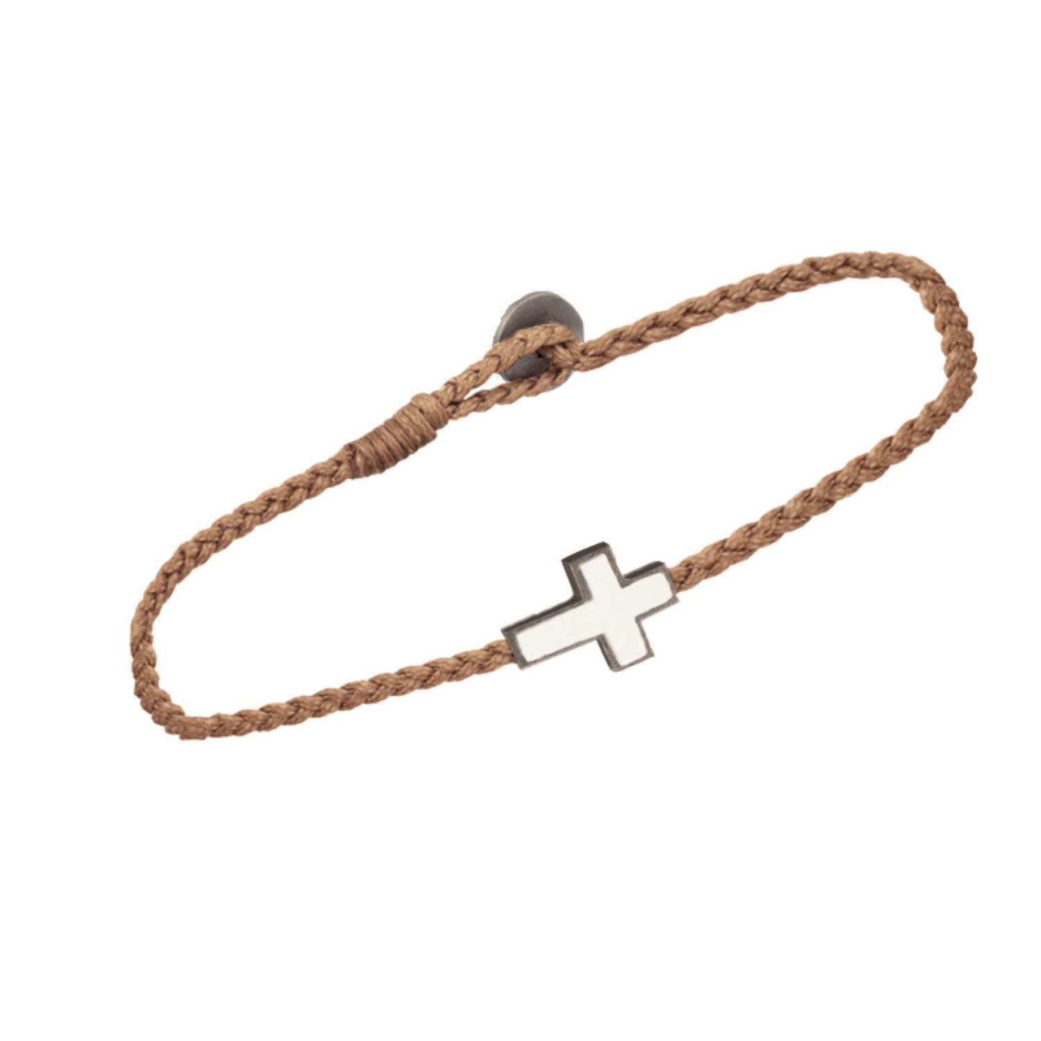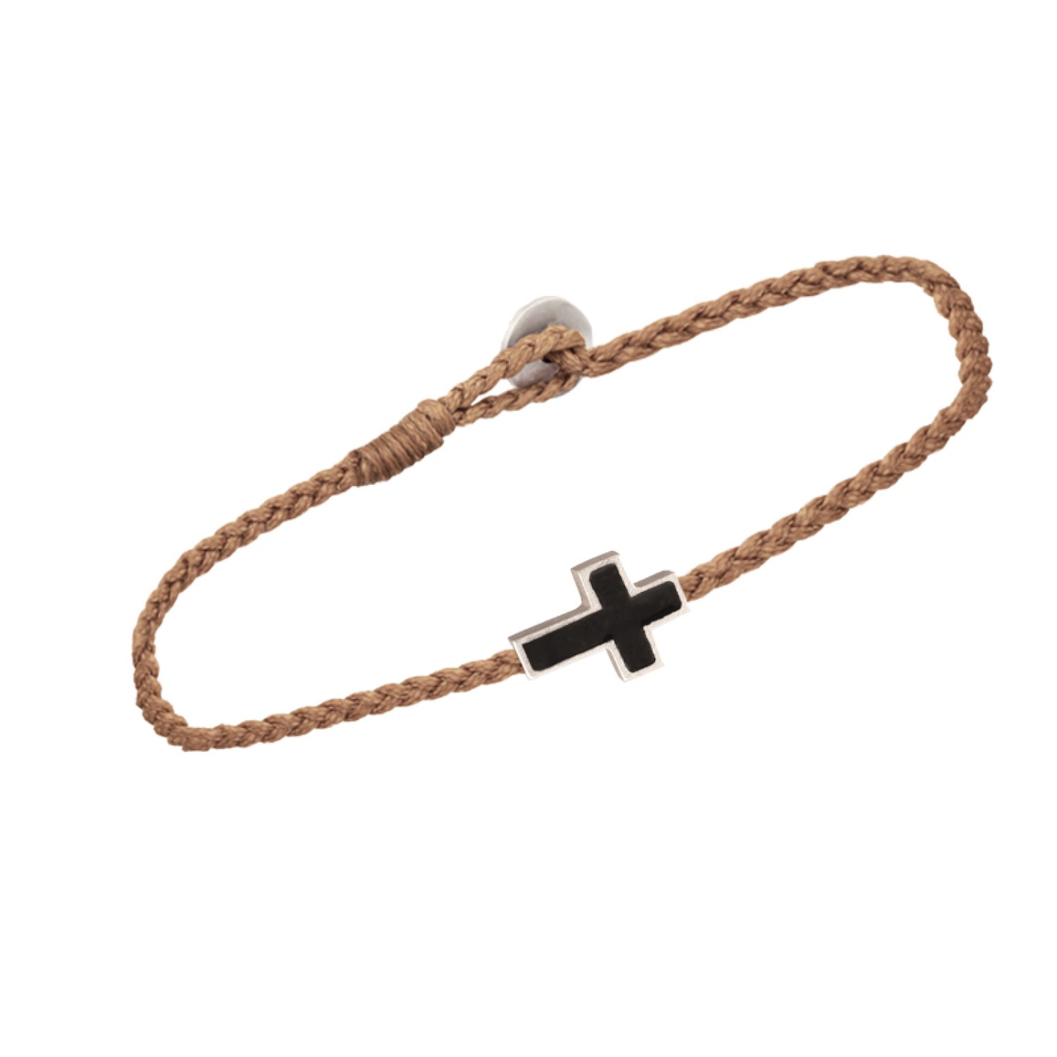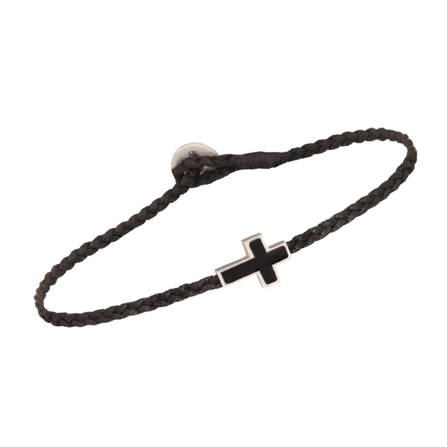 Ανδρικό βραχιόλι κορδόνι ασημένιος Σταυρός