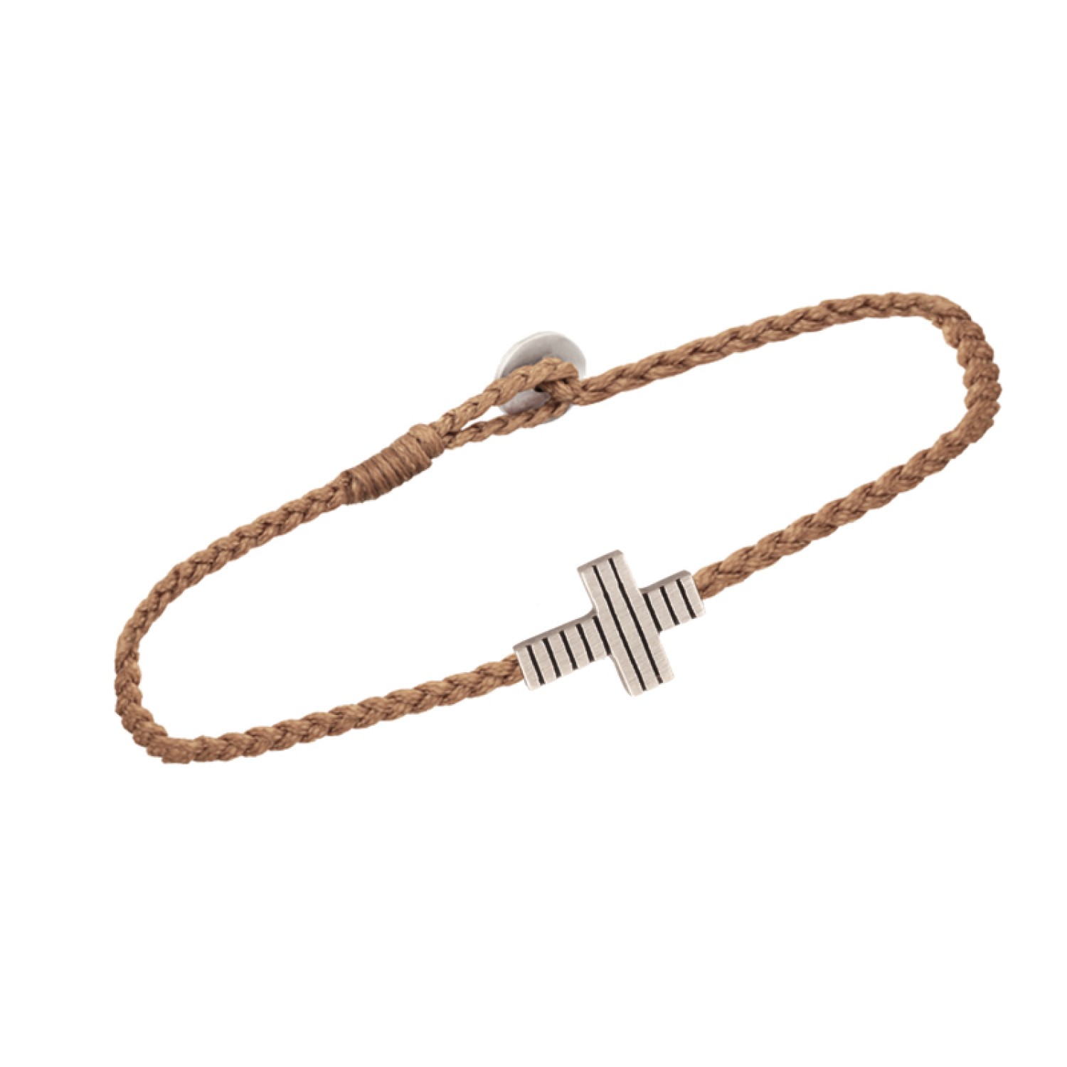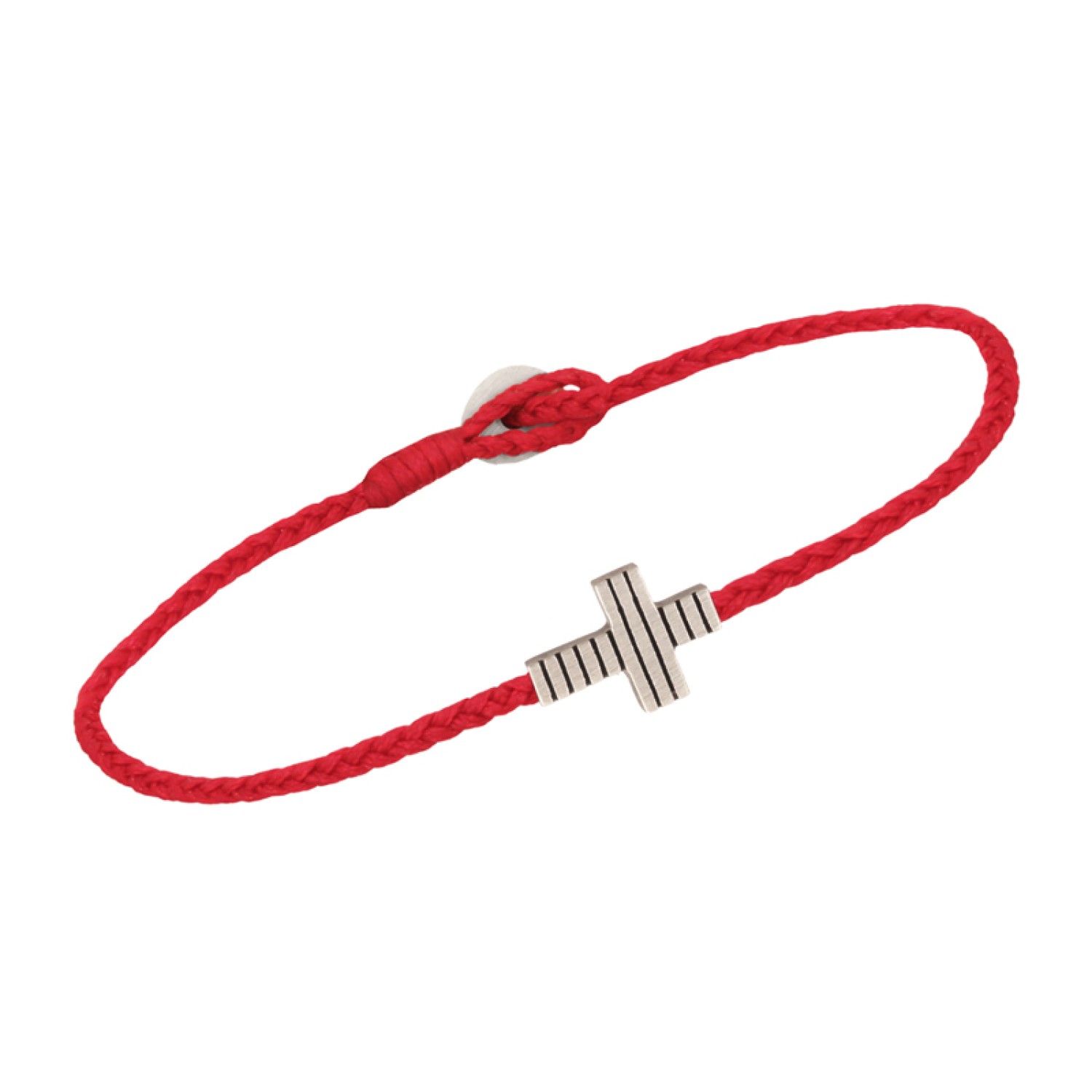 Ανδρικό βραχιόλι κορδόνι ασημένιος Σταυρός