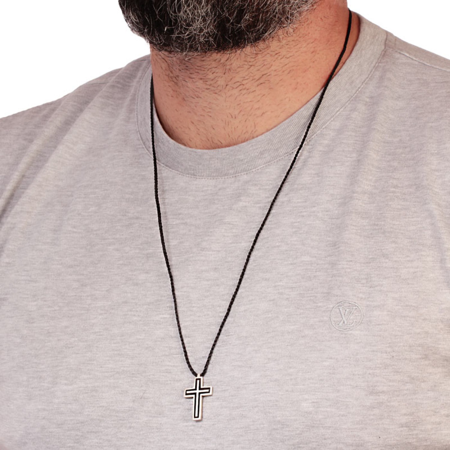 Κολιέ κορδόνι ασημένιος Σταυρός
