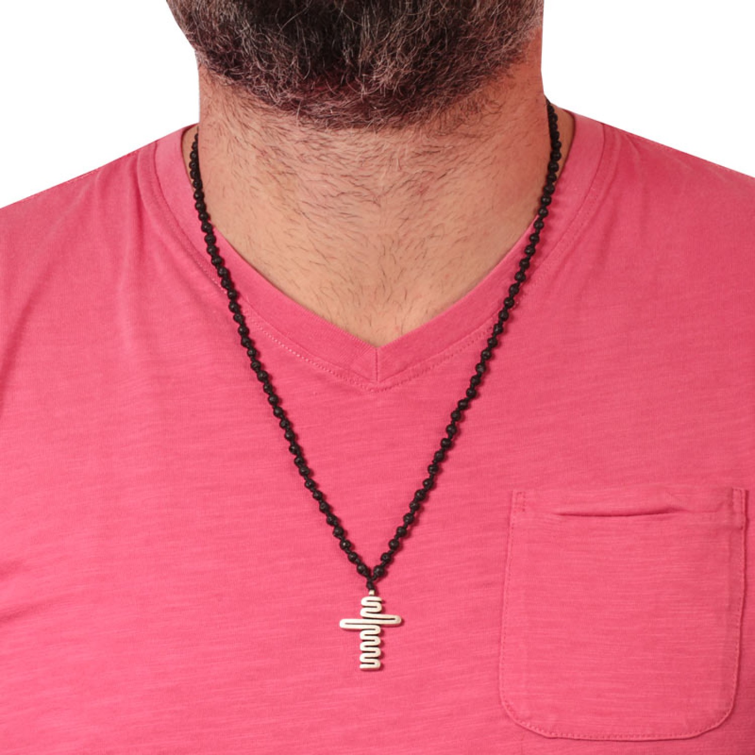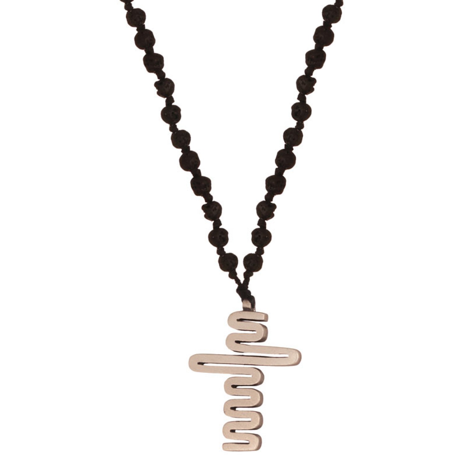 Αντρικός ασημένιος 925 επιπλατινωμένος Σταυρός σχέδιο Zig Zag σε κολιέ κηροκλωστές πλεγμένες κόμπο κόμπο με πέτρες μαύρη Λάβα. Το κρεμαστό μενταγιόν συνδυάζει μοναδικά θρησκευτικό συμβολισμό και πόντους στύλ. Ενα χειροποίητο ροζάριο με ιδιαίτερη λεπτομέρεια που θα υπογραμμίσει κάθε εμφάνιση. Το παντοτινό φυλαχτό Πίστης και Ορθοδοξίας σε minimal έκδοση. Μια εξαιρετική επιλογή και για ενα προσωπικό δώρο με πολυτέλεια και διαχρονικότητα.