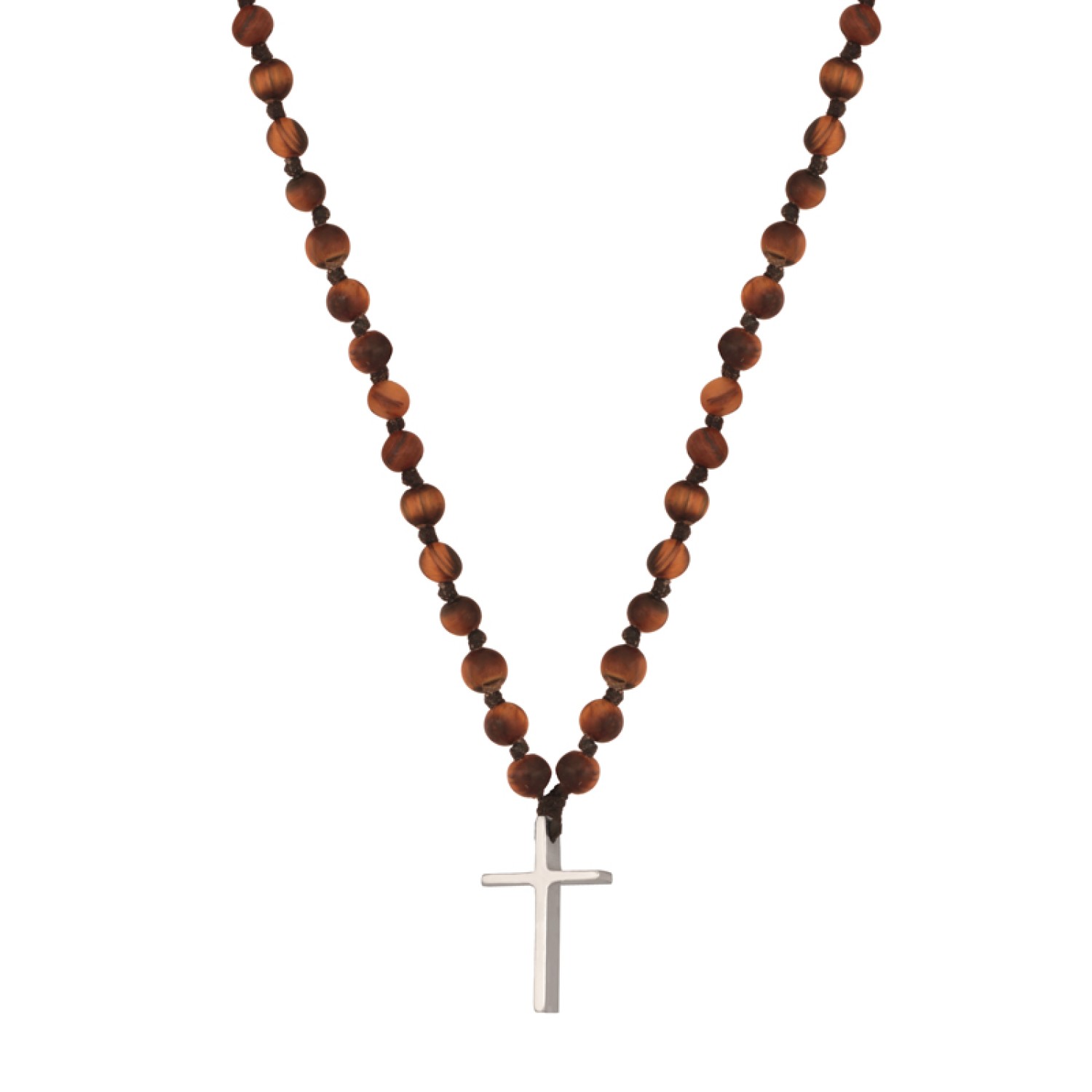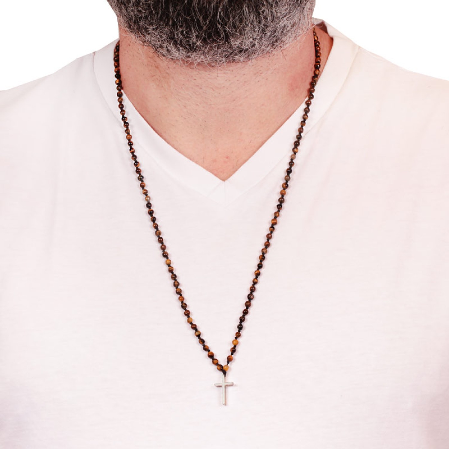 Κολιέ Ροζάριο Μάτι Τίγρη ασημένιος Σταυρός