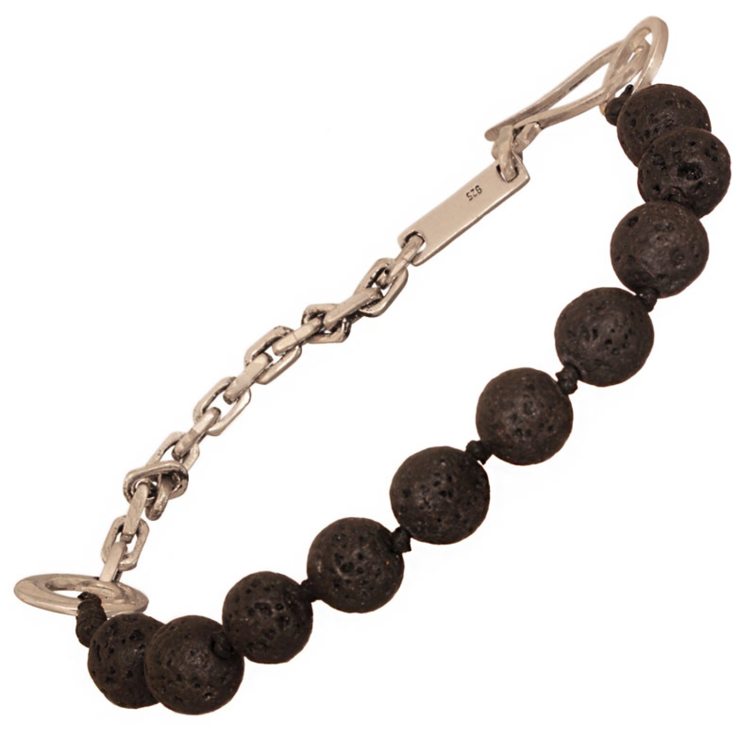 Ανδρικό βραχιόλι μαύρες πέτρες Λάβα και ασημένια 925 επιπλατινωμένη Αλυσίδα με κούμπωμα. Άκρως εντυπωσιακό και επιβλητικό, υπόσχεται να πρωταγωνιστήσει σε κάθε εμφάνιση. Ο συνδυασμός τω πέτρων και των υλικών το κάνει ακαταμάχητο. Ενα χειροποιήτο κόσμημα με rock στύλ που θα φορέσετε διαχρονικά. Μόνο του ή μαζί με άλλα σίγουρα θα κάνει το look σας αξέχαστο. Σημειώστε οτι λόγω φύσης και μορφολογίας κάθε πέτρα είναι μια και μπορεί να παρουσιάζει διαφοροποιήσεις. Προτείνουμε να το χαρίσετε ως ενα προσωπικό δώρο με πολυτέλεια και γούστο.
