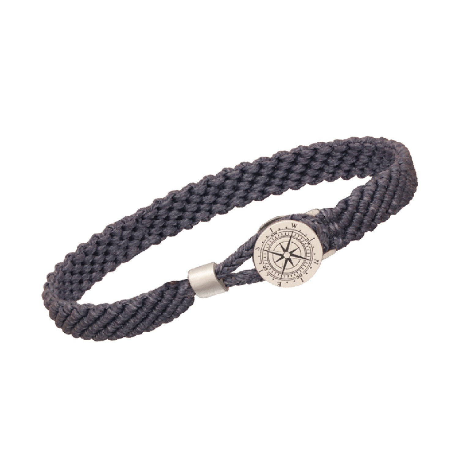 Βραχιόλι κορδόνι ασημένια Πυξίδα