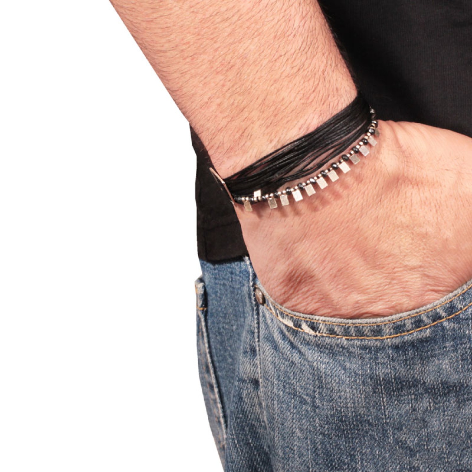 Βραχιόλι κορδόνι ασημένια Τετράγωνα Αιματίτες
