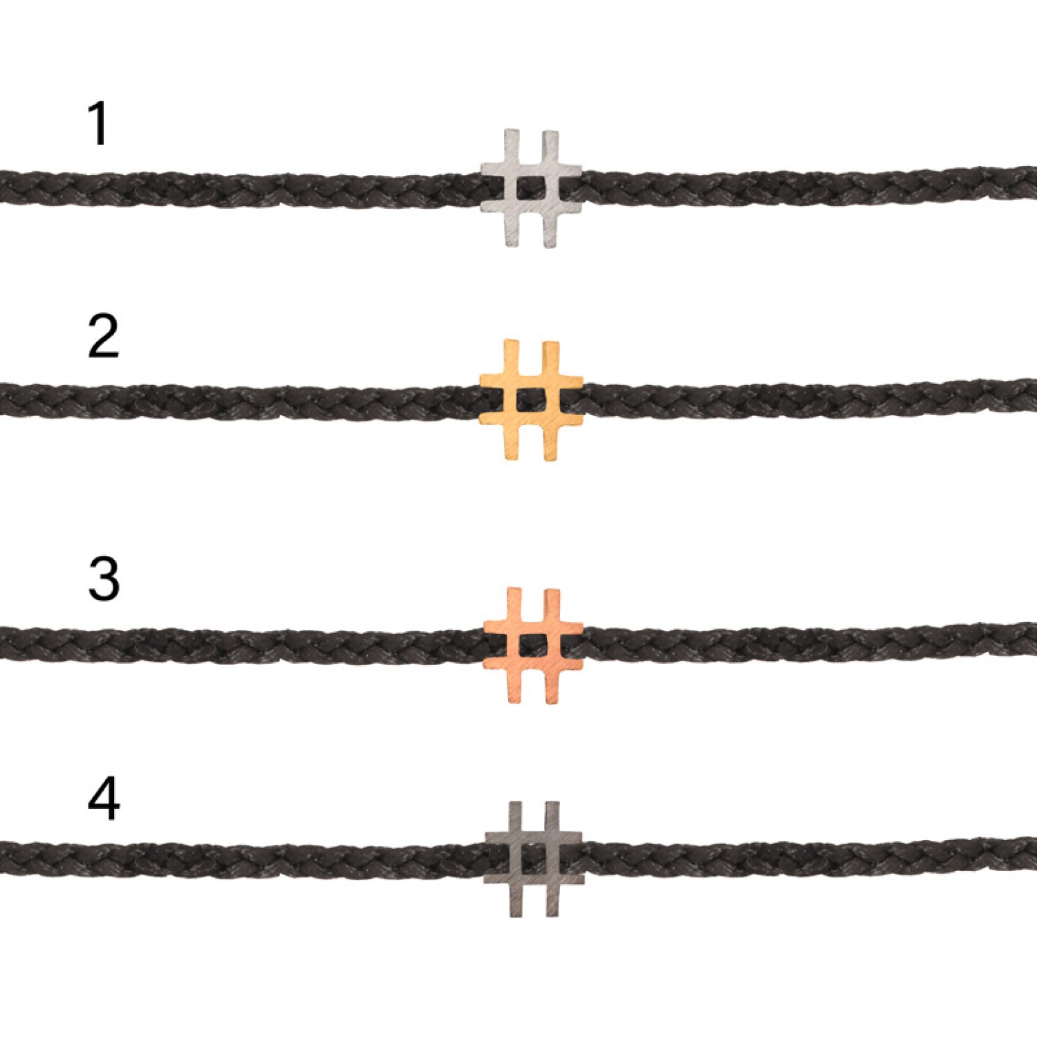 Βραχιόλι κορδόνι ασημένιο Hashtag