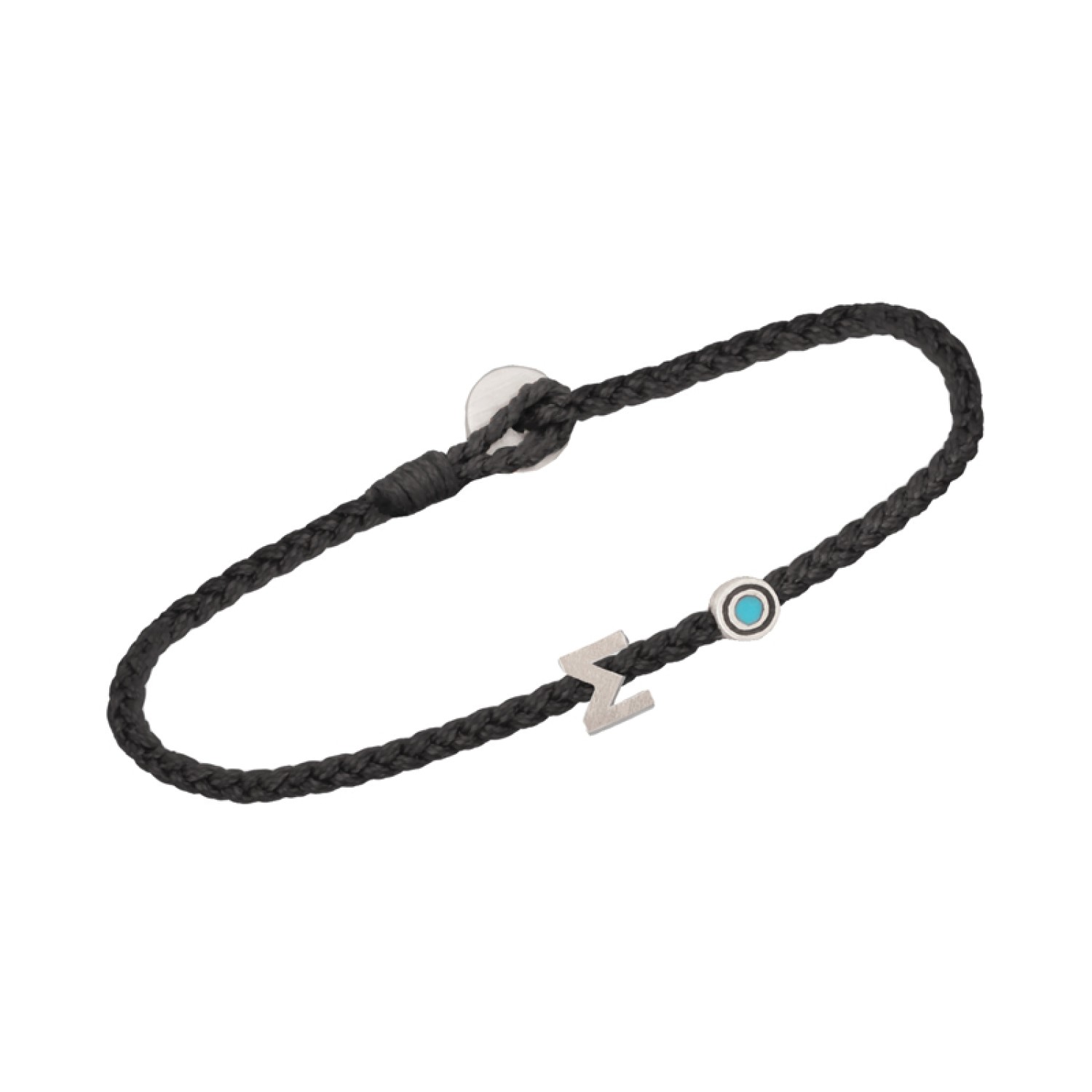 Βραχιόλι κορδόνι ασημένιο Μονόγραμμα Σ και Μάτι