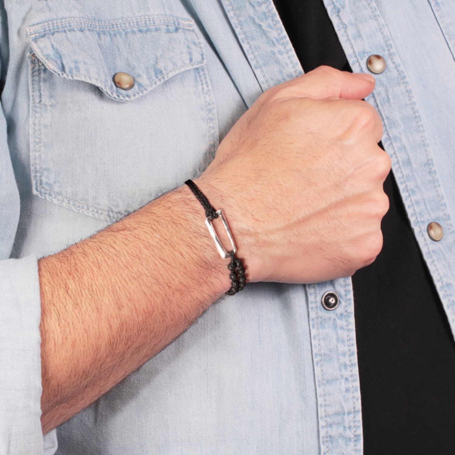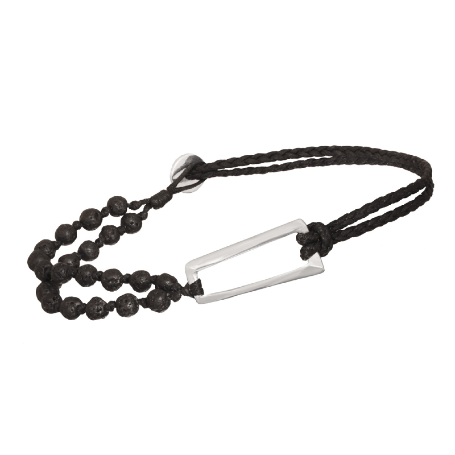 Βραχιόλι κορδόνι ασημένιο Παραλληλόγραμμο Λάβα Πέτρες