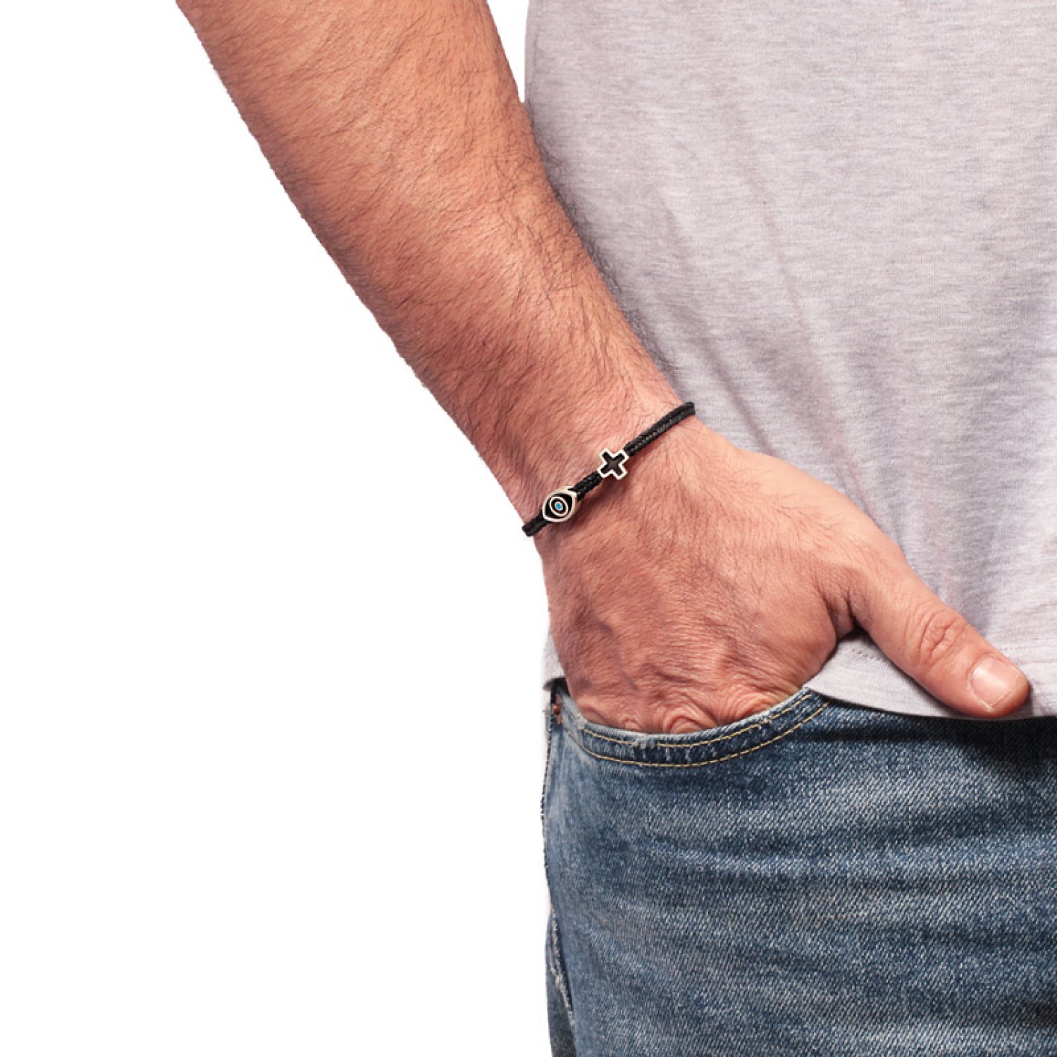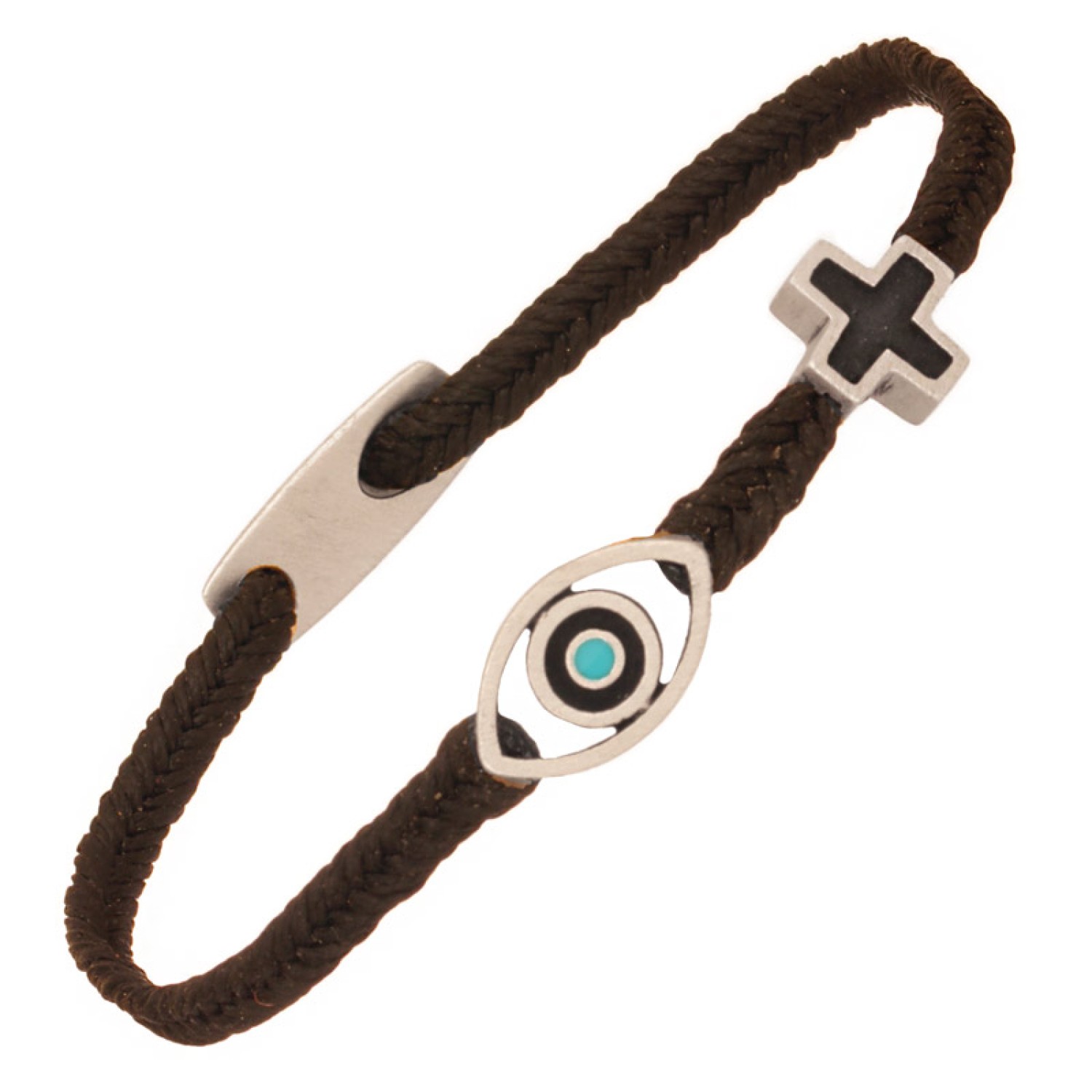 Βραχιόλι κορδόνι ασημένιος Σταυρός Μάτι