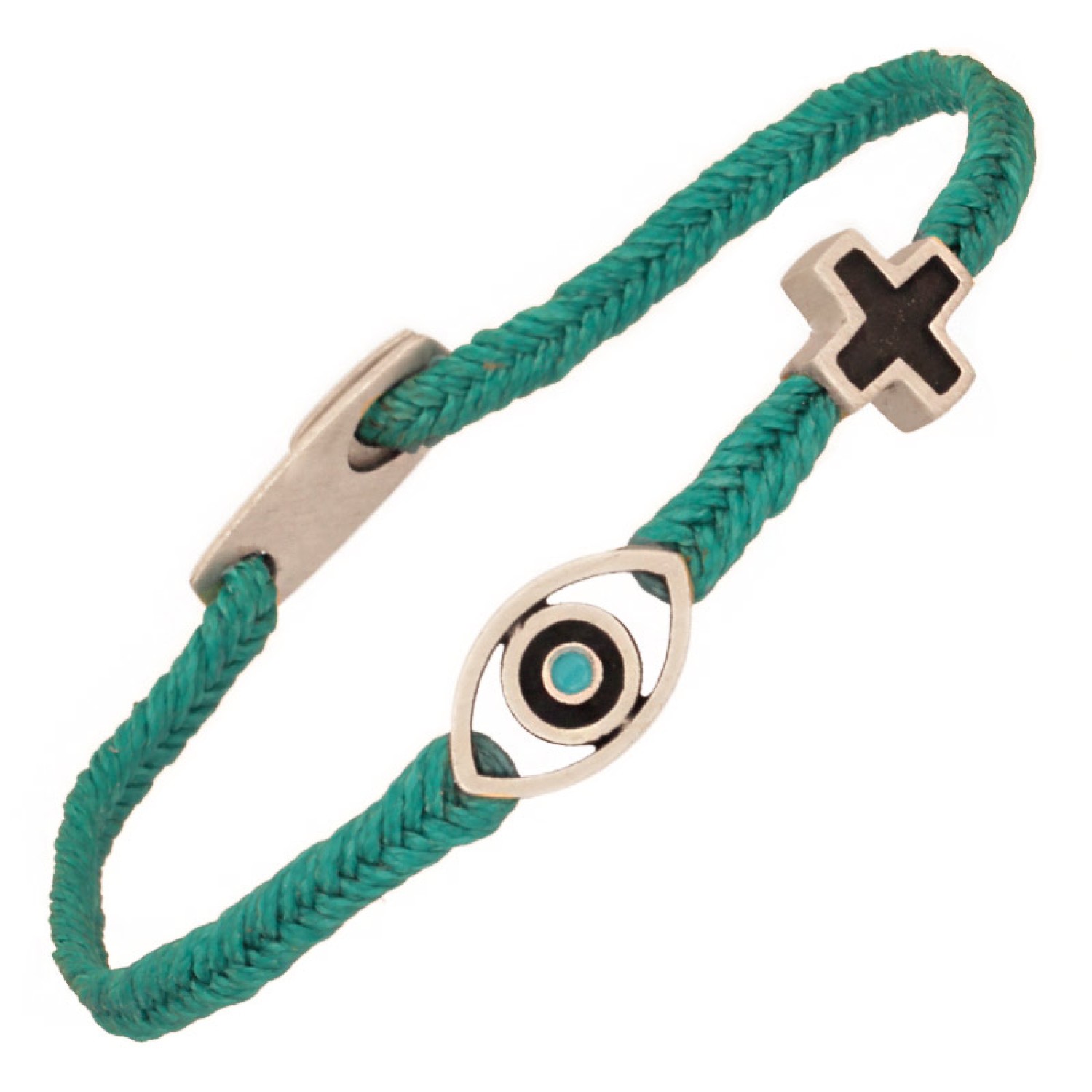 Βραχιόλι κορδόνι ασημένιος Σταυρός Μάτι