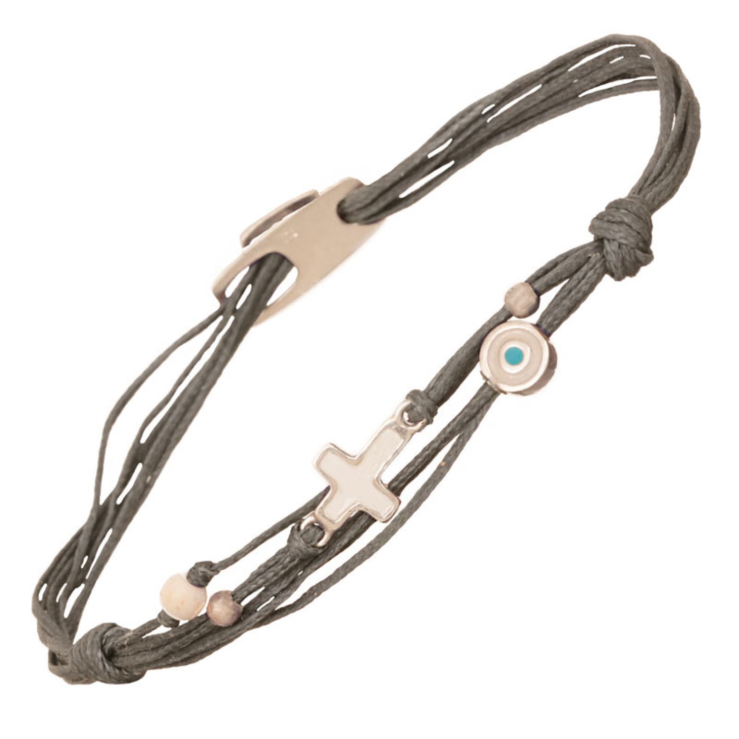 Βραχιόλι κορδόνι ασημένιος Σταυρός Μάτι