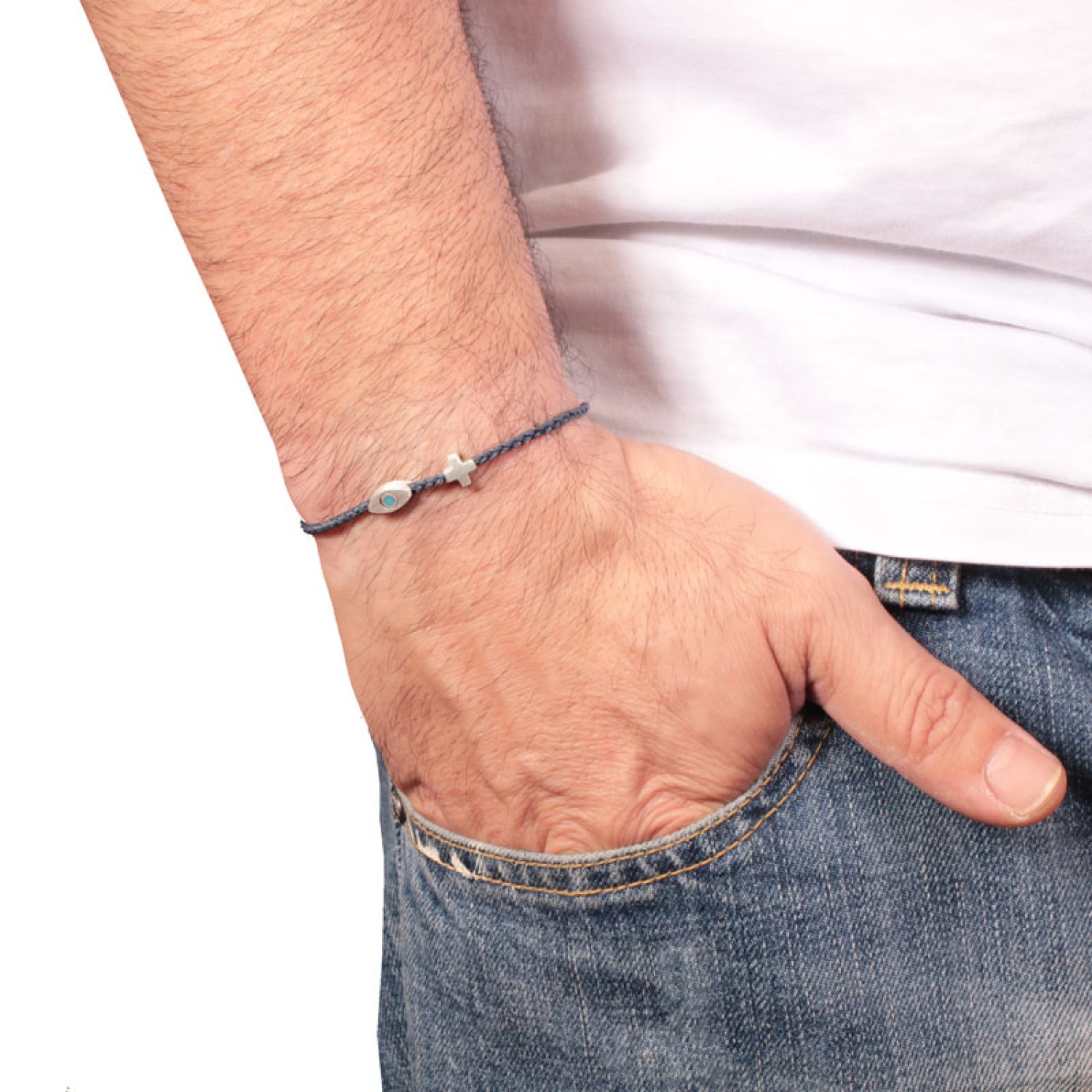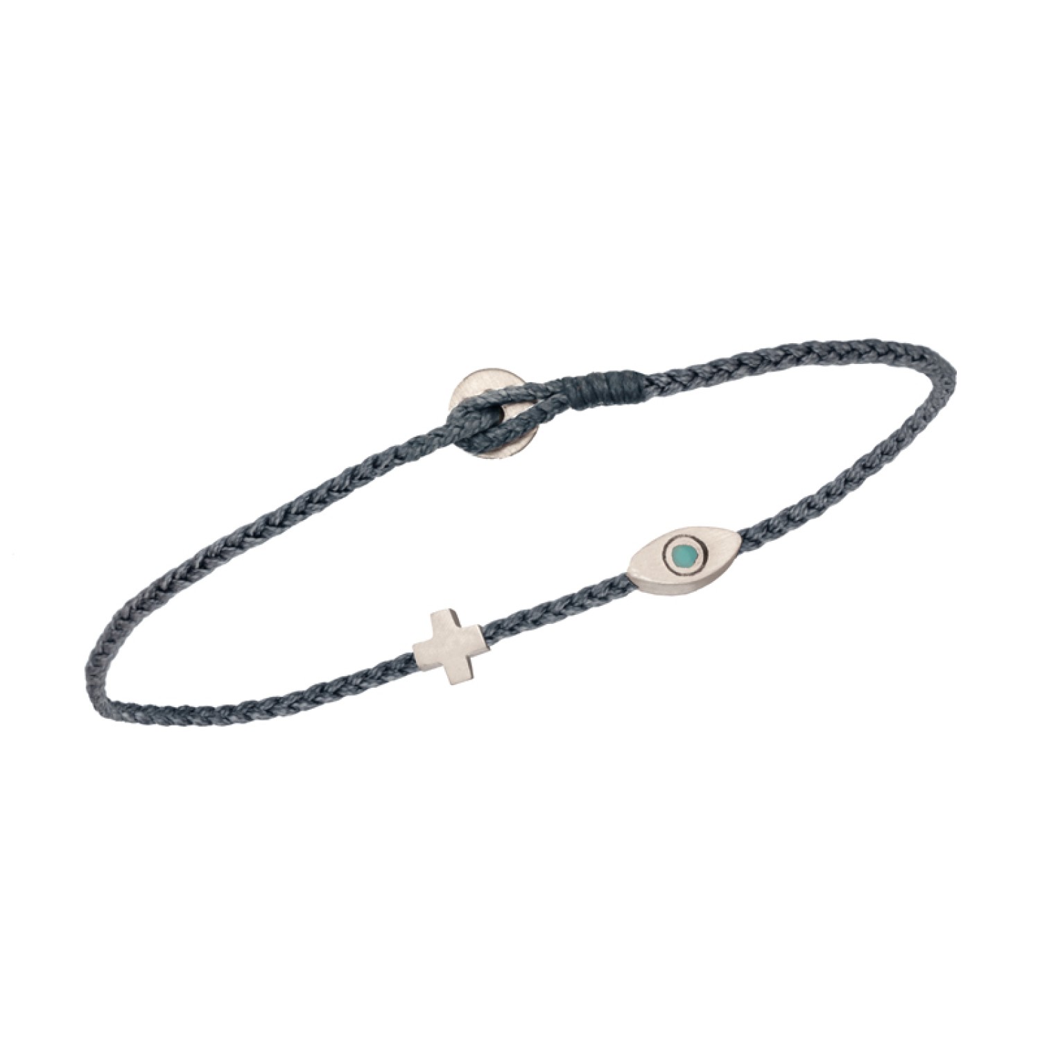 Βραχιόλι κορδόνι ασημένιος Σταυρός Μάτι