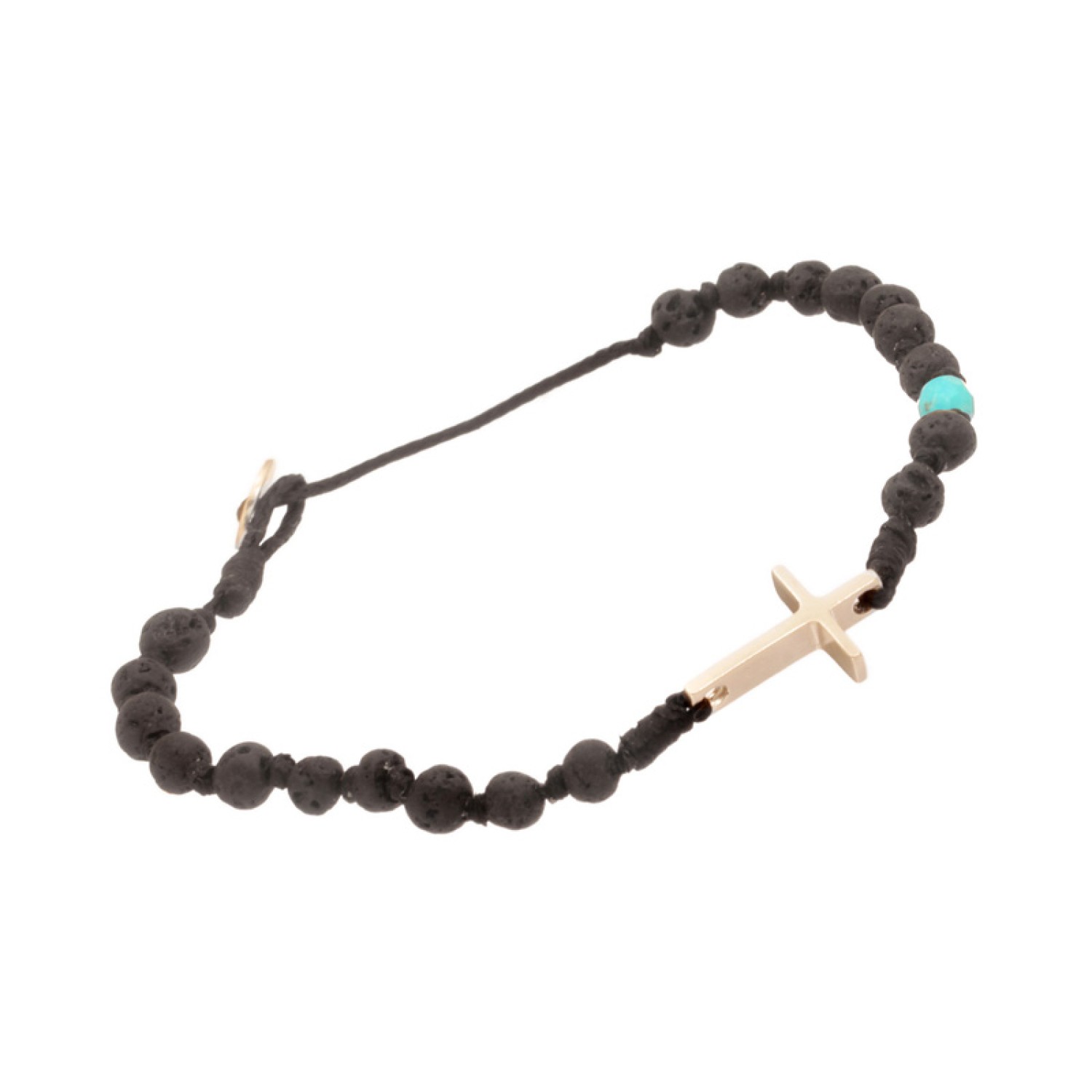 Βραχιόλι κορδόνι ασημένιος Σταυρός Πέτρες Λάβα