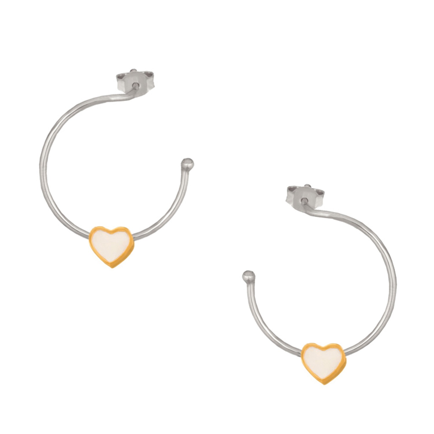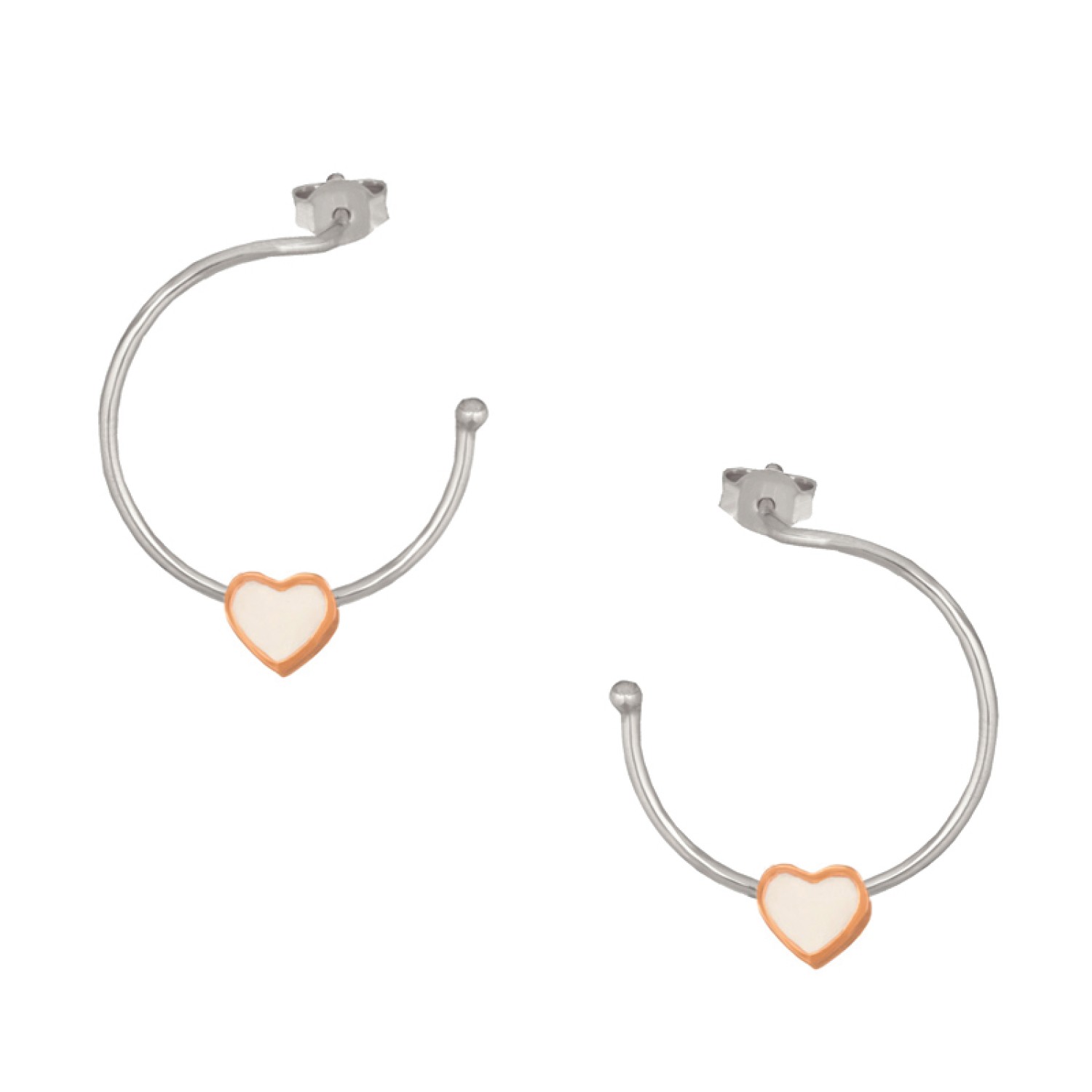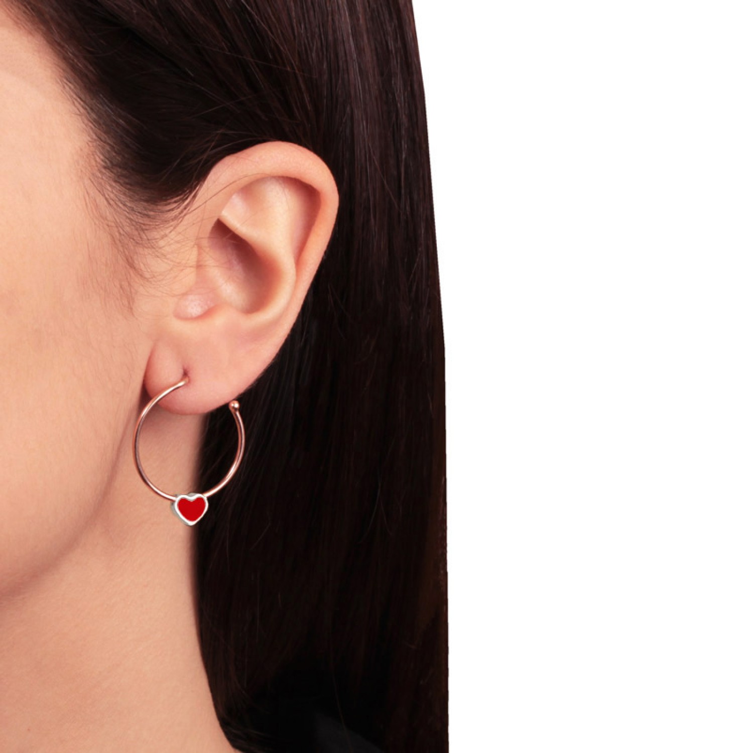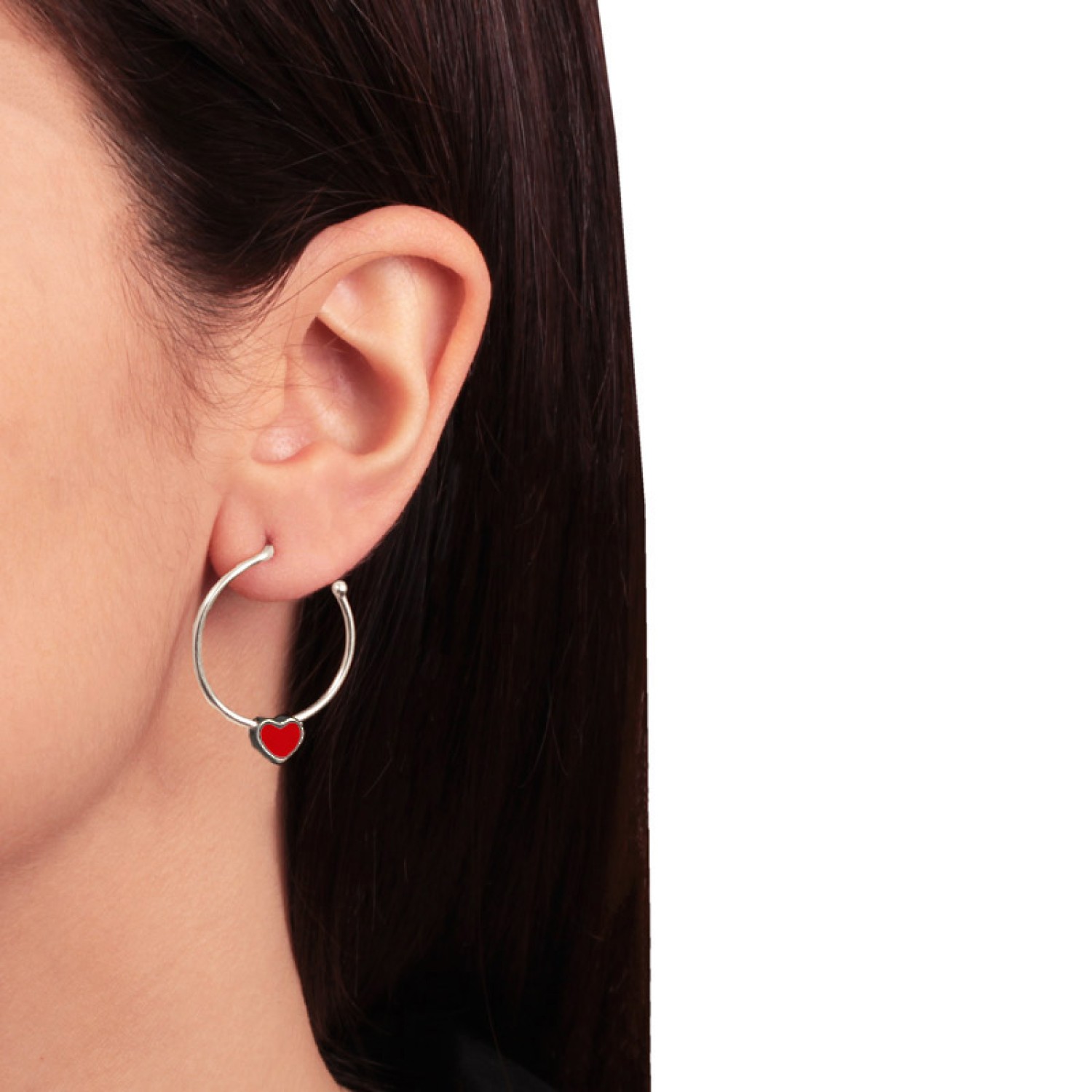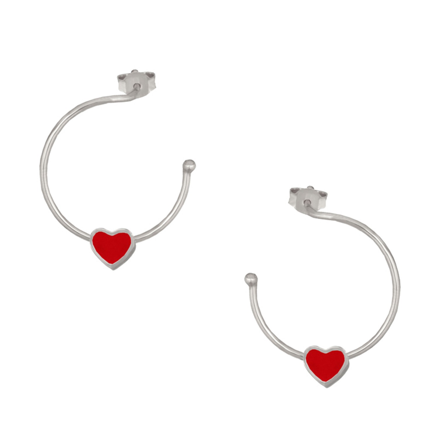Γυναικεία ασημένια σκουλαρίκια 925 με περαστή καρδιά σμάλτο σε μπροστινό επιπλατινωμένο Κρίκο. Ένα χειροποίητο κόσμημα που συνδυάζει απαράμιλλη λάμψη και chic στυλ, ενώ υπόσχεται να πρωταγωνιστήσει σε κάθε εμφάνιση. Θα γίνει το σήμα κατατεθέν σας μαγνητίζοντας όλα τα βλέμματα θαυμασμού. Το πιο προσωπικό σας κόσμημα είναι εδώ τώρα και πάντα. Το κομψό μέγεθος είναι ιδανικό να το συνδυάσετε και με αλλά για ένα ear party look.