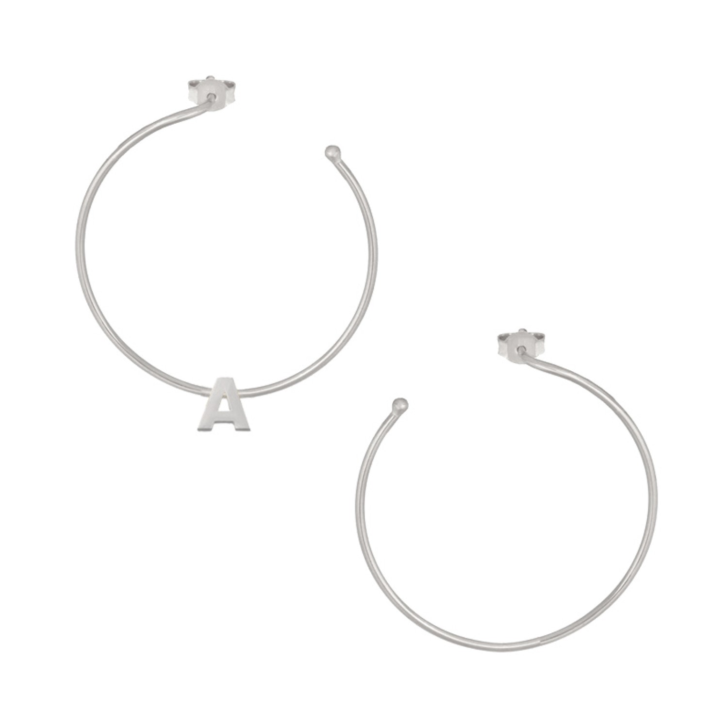 Ασημένια επιπλατινωμένα σκουλαρίκια Κρίκοι Μονόγραμμα Α 35.00mm