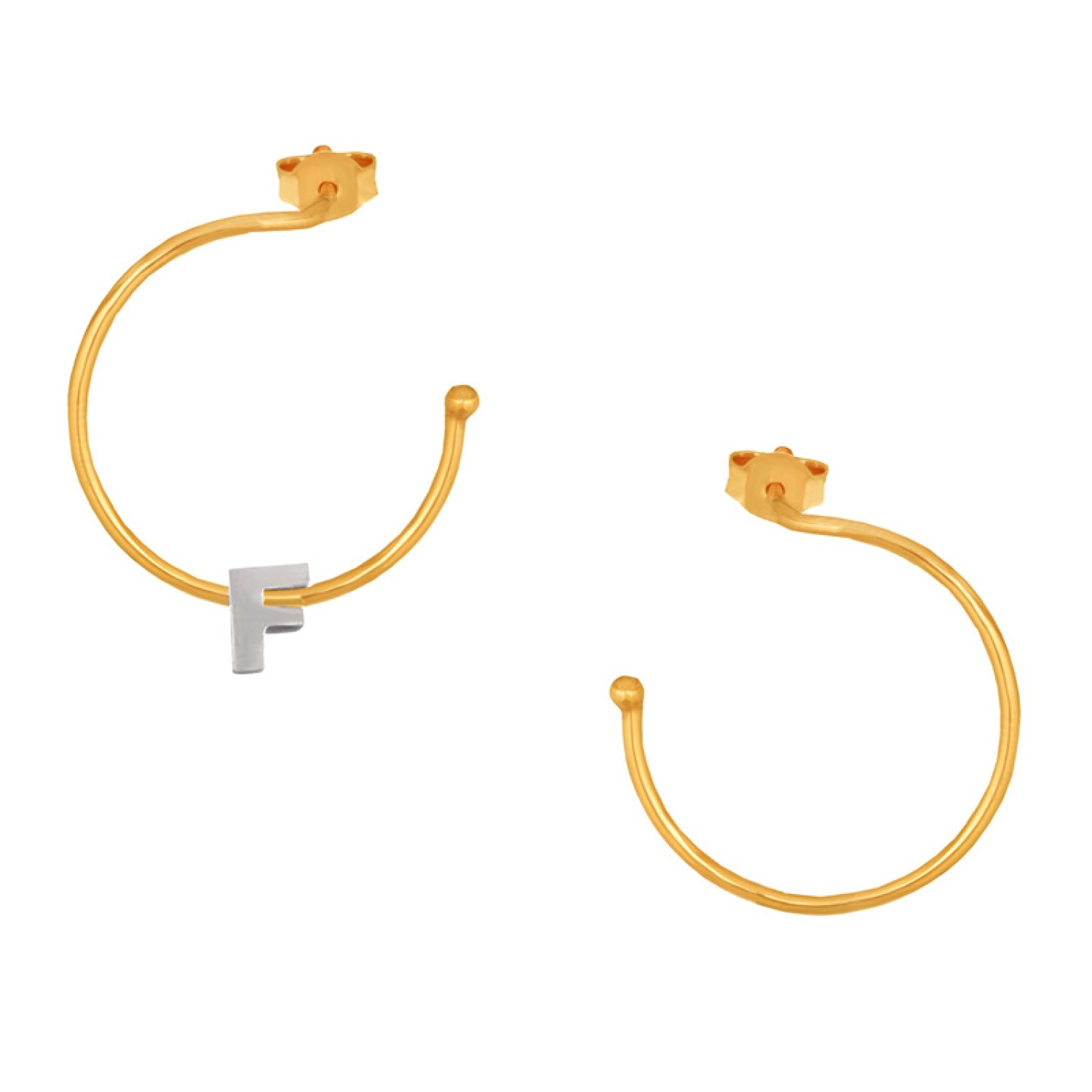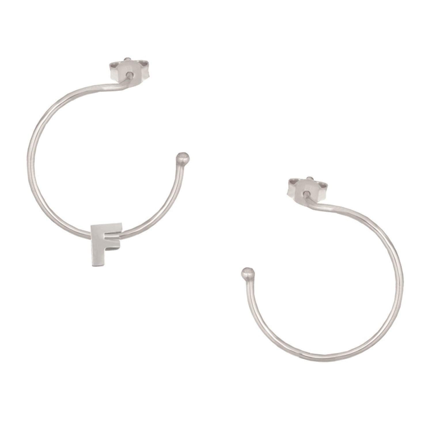 Ασημένια επιπλατινωμένα σκουλαρίκια Κρίκοι Μονόγραμμα F 25.00mm