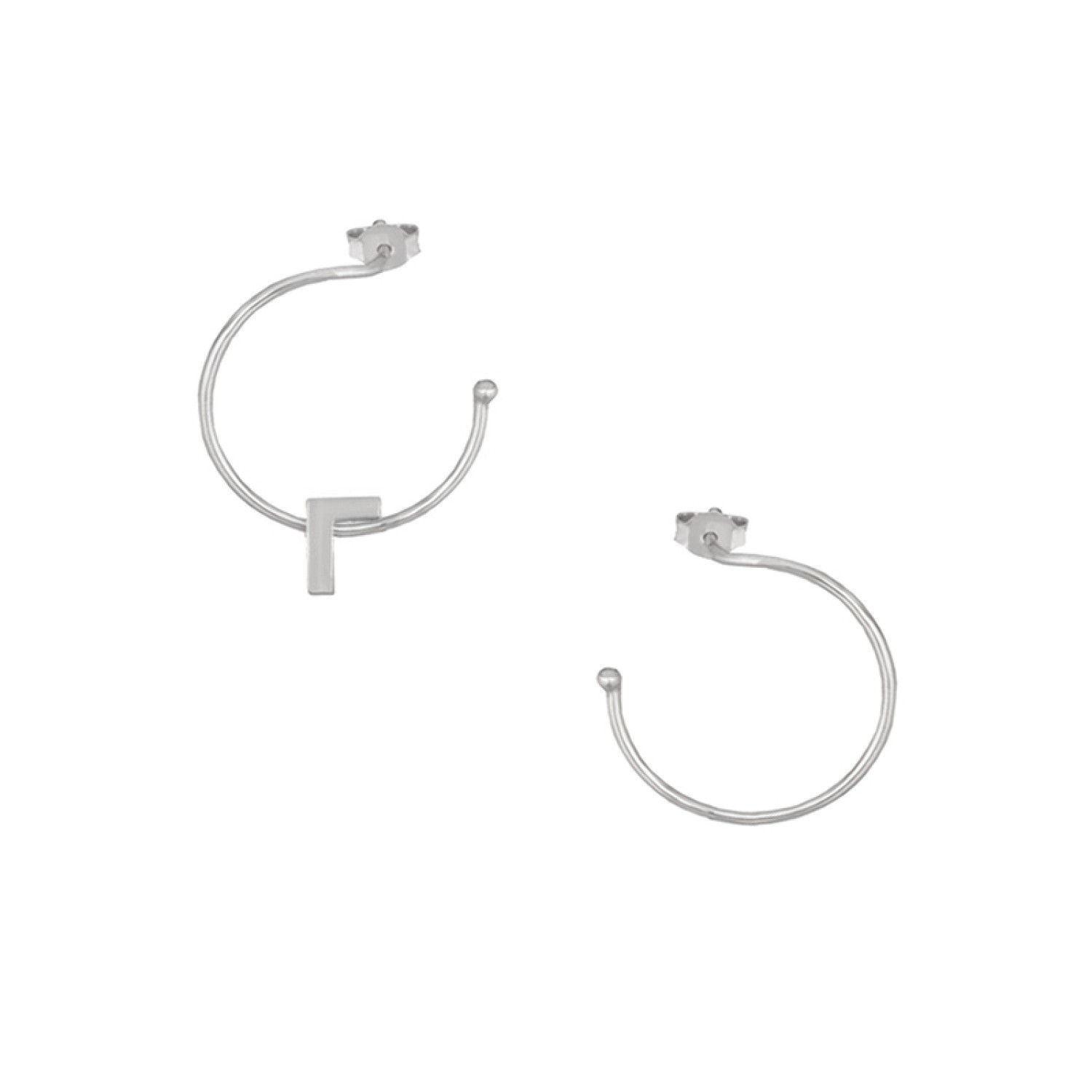Ασημένια επιπλατινωμένα σκουλαρίκια Κρίκοι Μονόγραμμα Γ 16.00mm