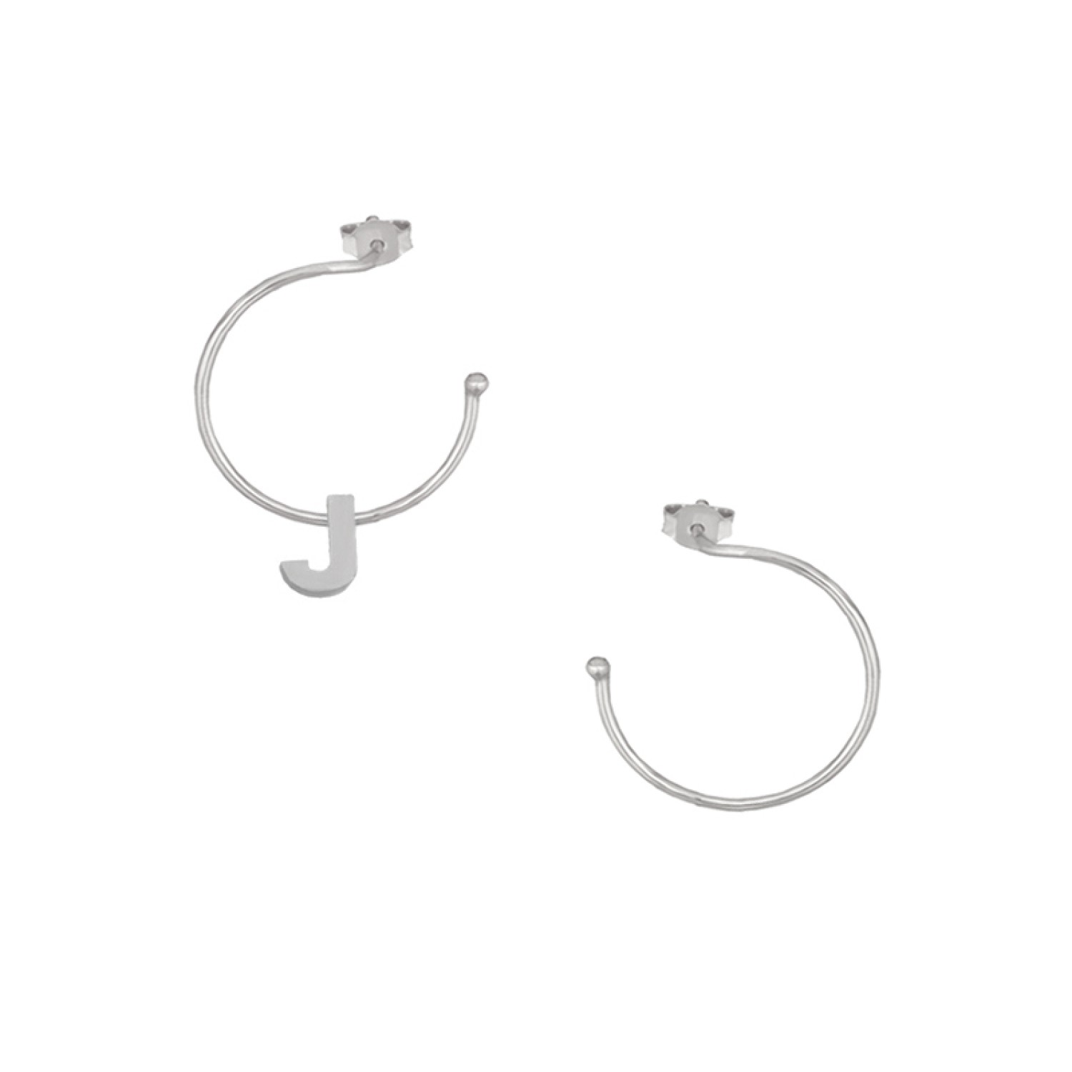 Ασημένια επιπλατινωμένα σκουλαρίκια Κρίκοι Μονόγραμμα J 16.00mm