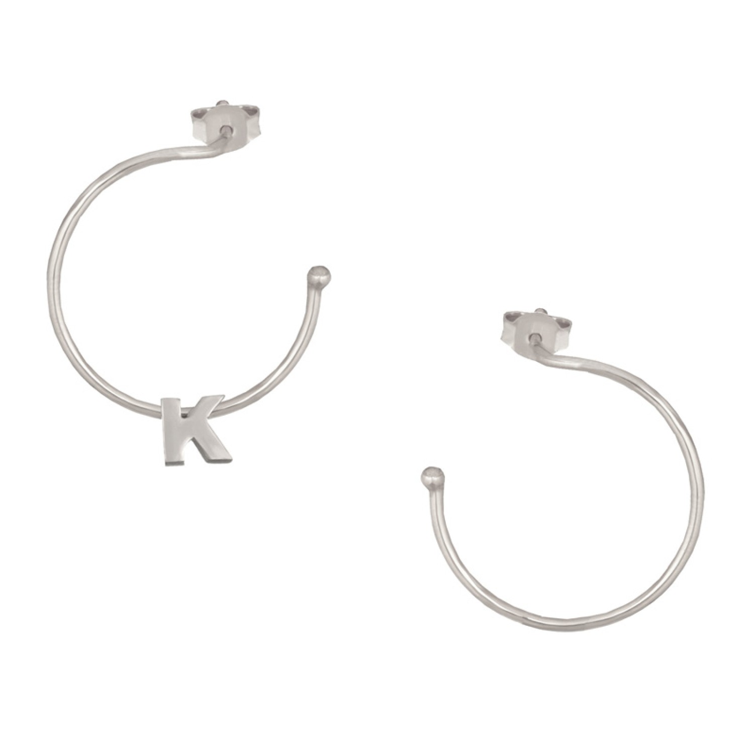 Ασημένια επιπλατινωμένα σκουλαρίκια Κρίκοι Μονόγραμμα Κ 25.00mm