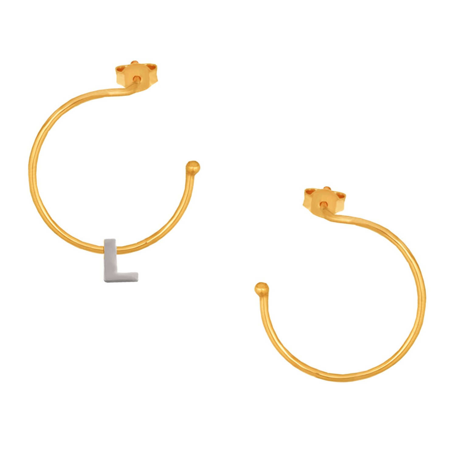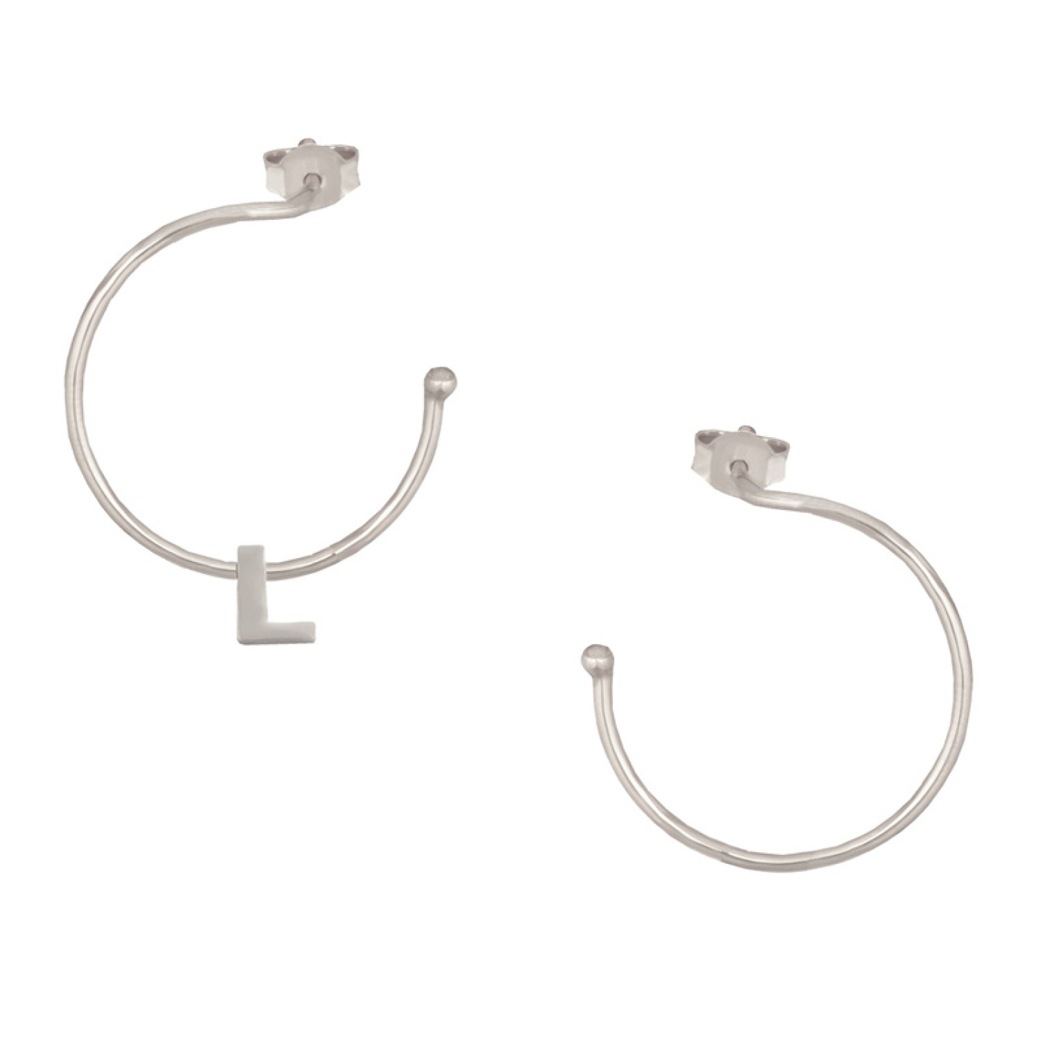 Ασημένια επιπλατινωμένα σκουλαρίκια Κρίκοι Μονόγραμμα L 25.00mm