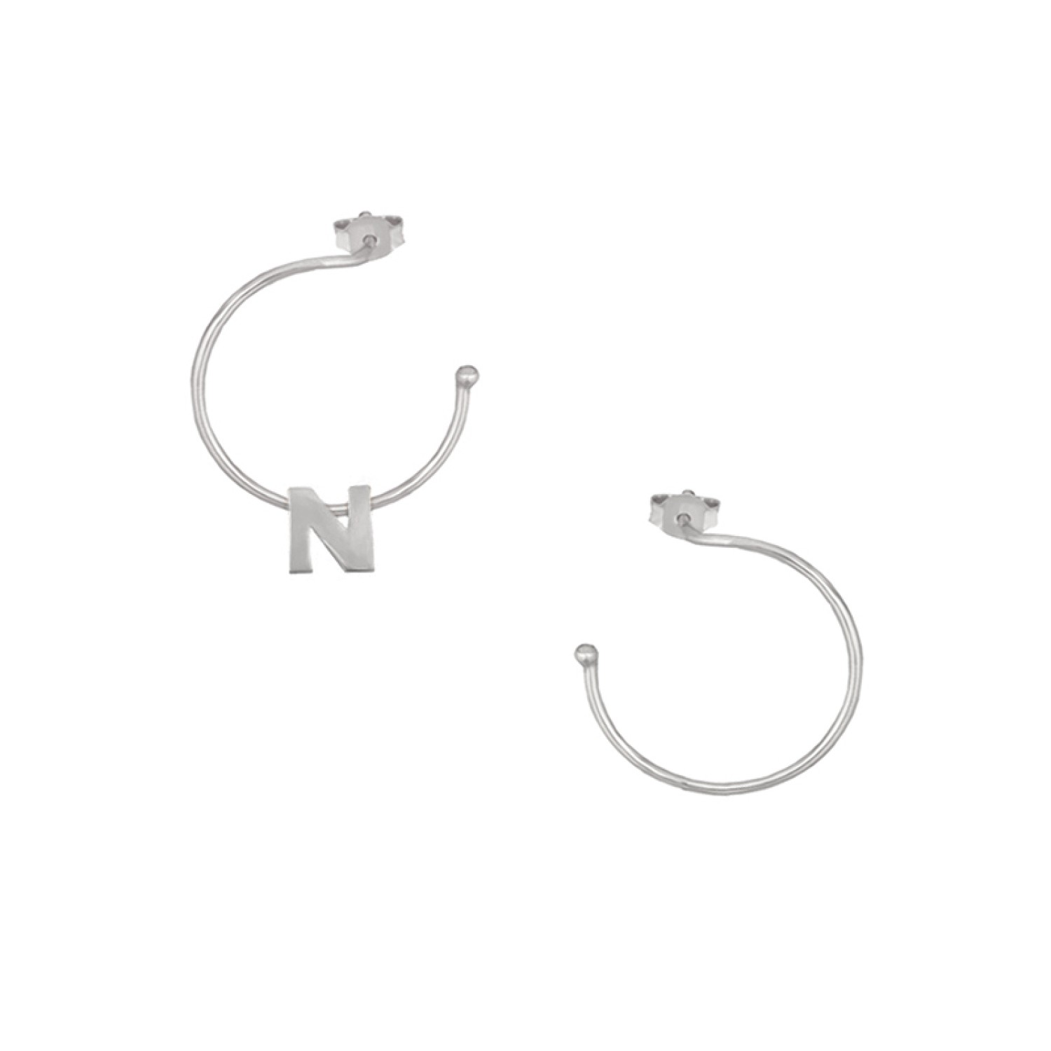 Ασημένια επιπλατινωμένα σκουλαρίκια Κρίκοι Μονόγραμμα Ν 16.00mm