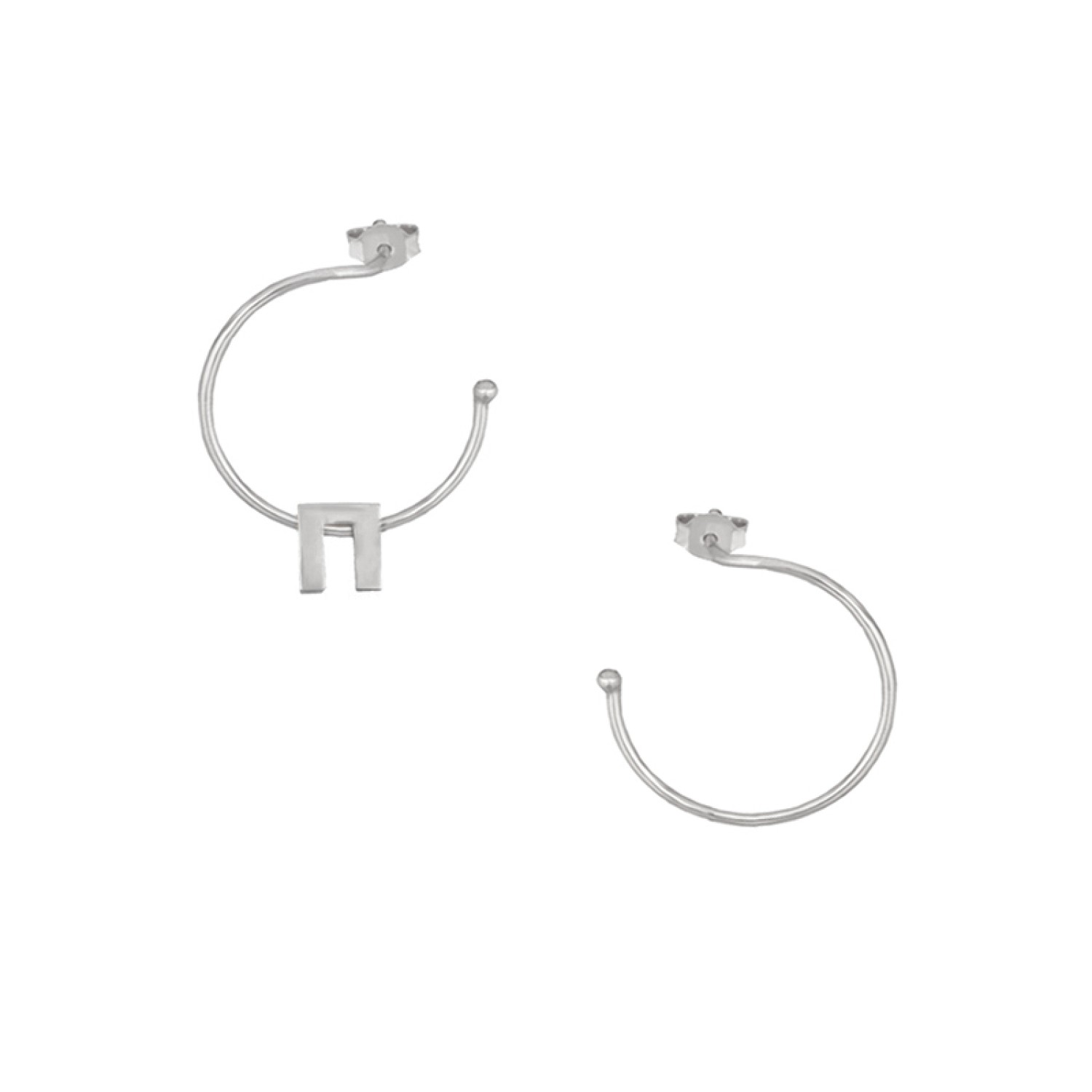 Ασημένια επιπλατινωμένα σκουλαρίκια Κρίκοι Μονόγραμμα Π 16.00mm
