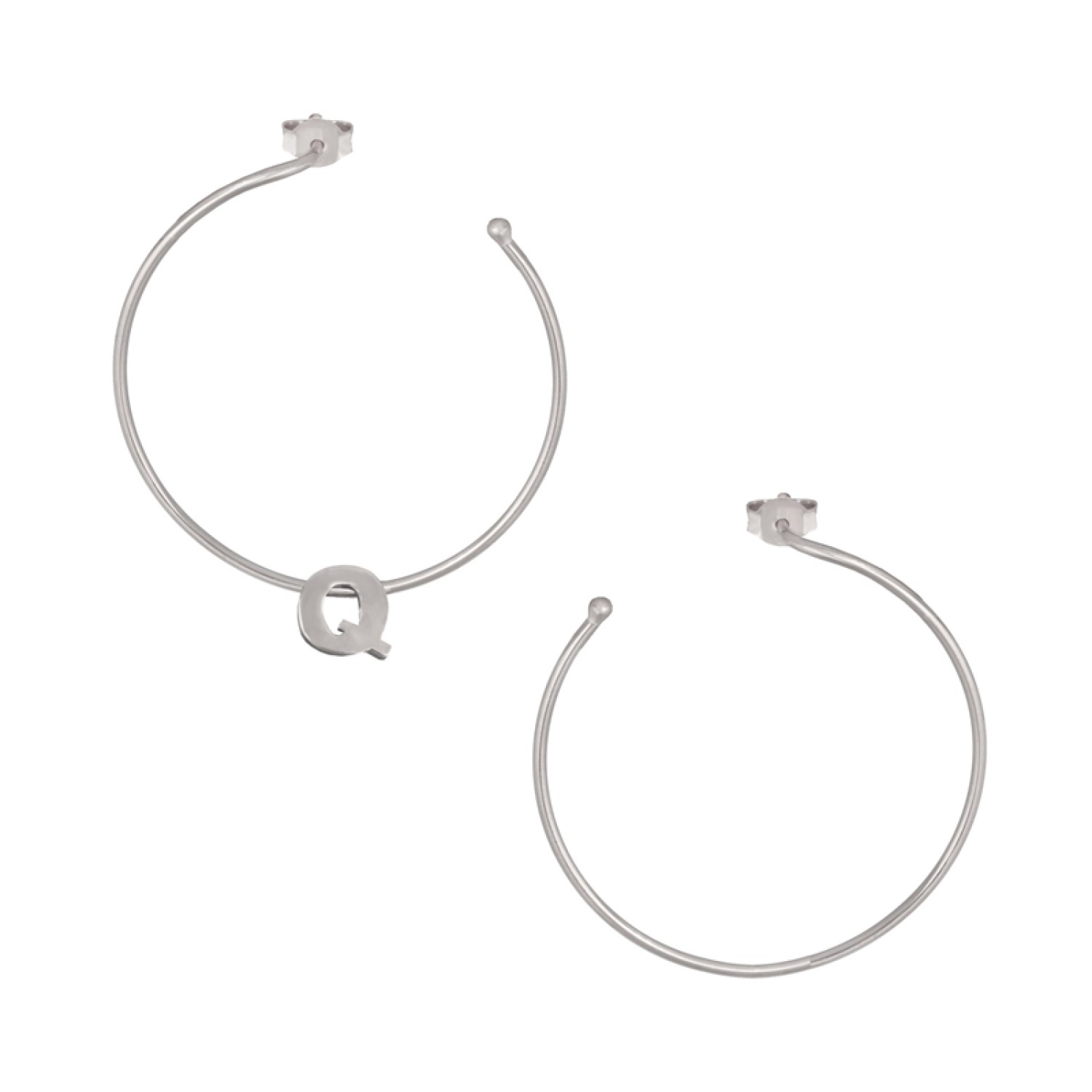 Ασημένια επιπλατινωμένα σκουλαρίκια Κρίκοι Μονόγραμμα Q 35.00mm