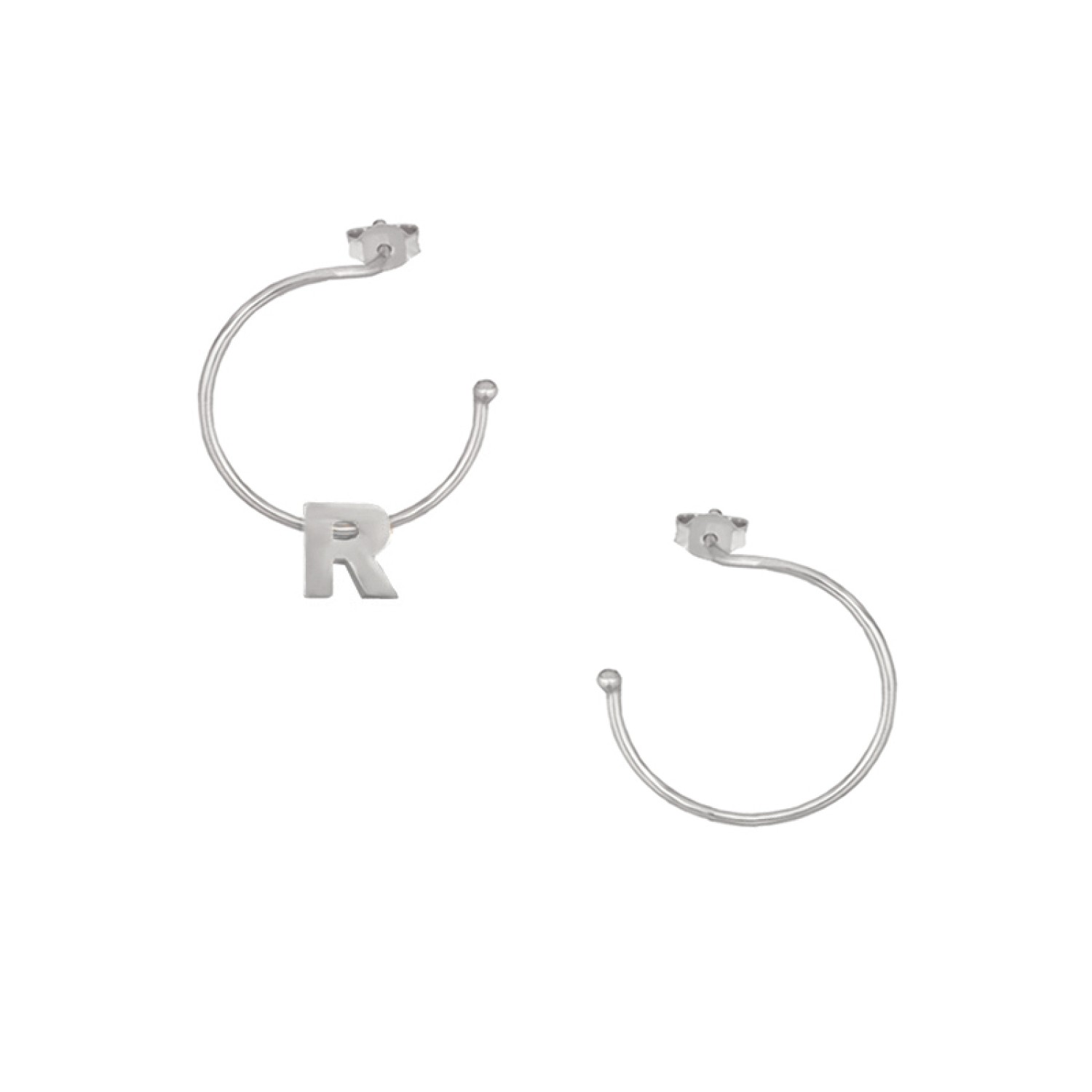 Ασημένια επιπλατινωμένα σκουλαρίκια Κρίκοι Μονόγραμμα R 16.00mm