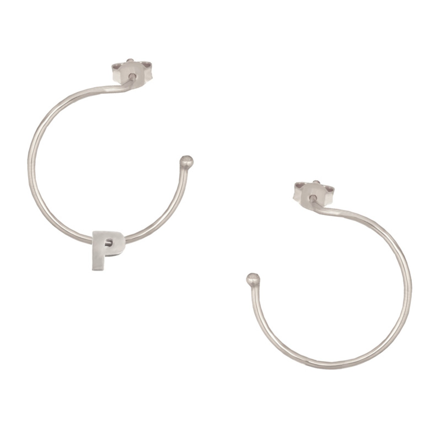 Ασημένια επιπλατινωμένα σκουλαρίκια Κρίκοι Μονόγραμμα Ρ 25.00mm