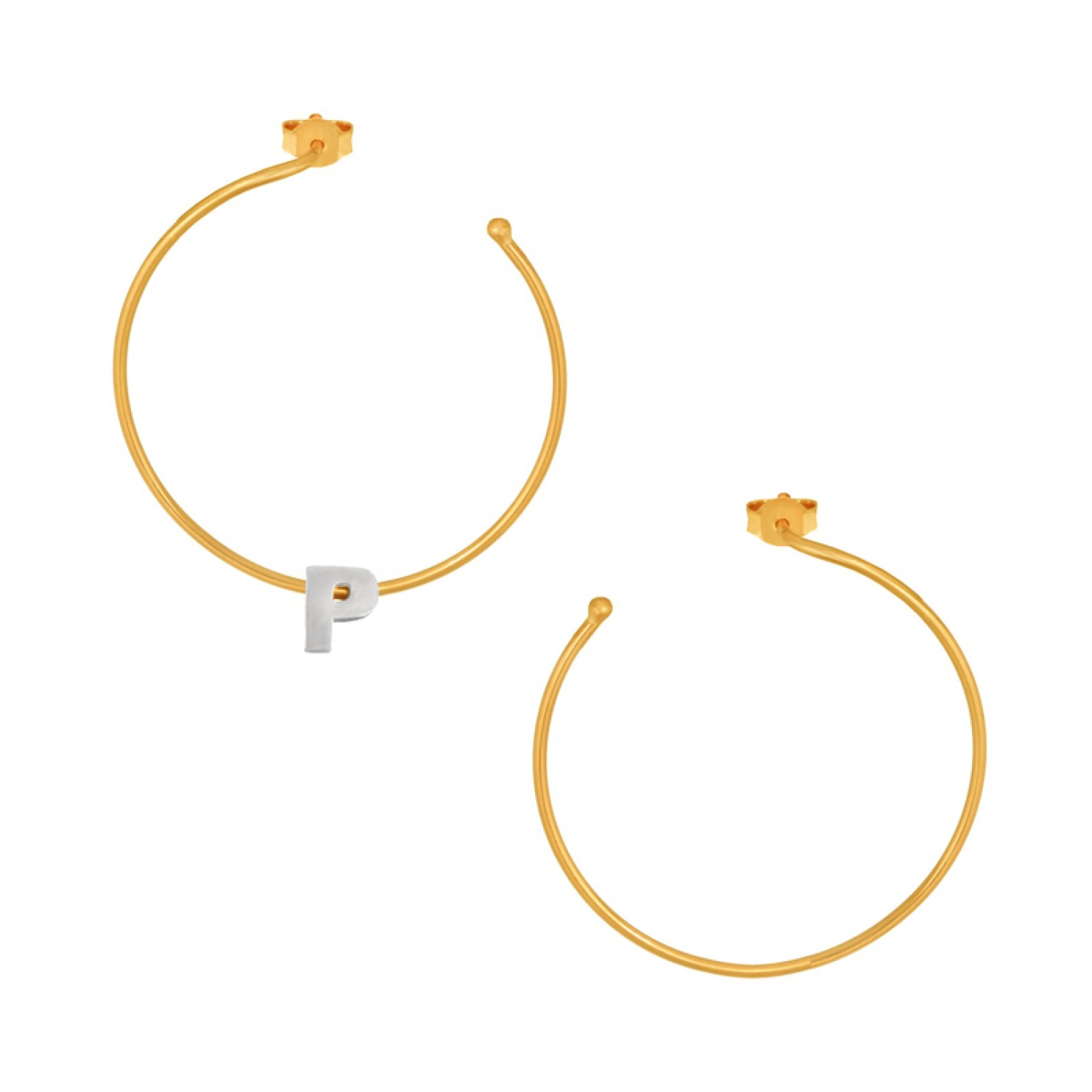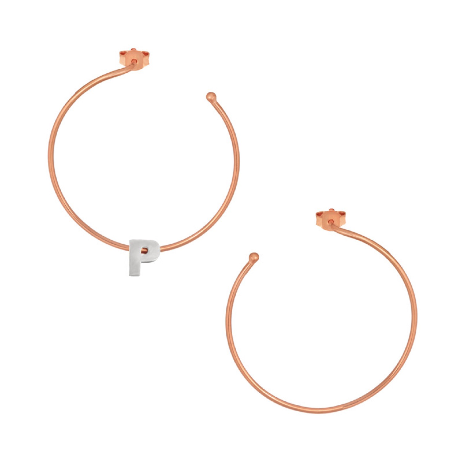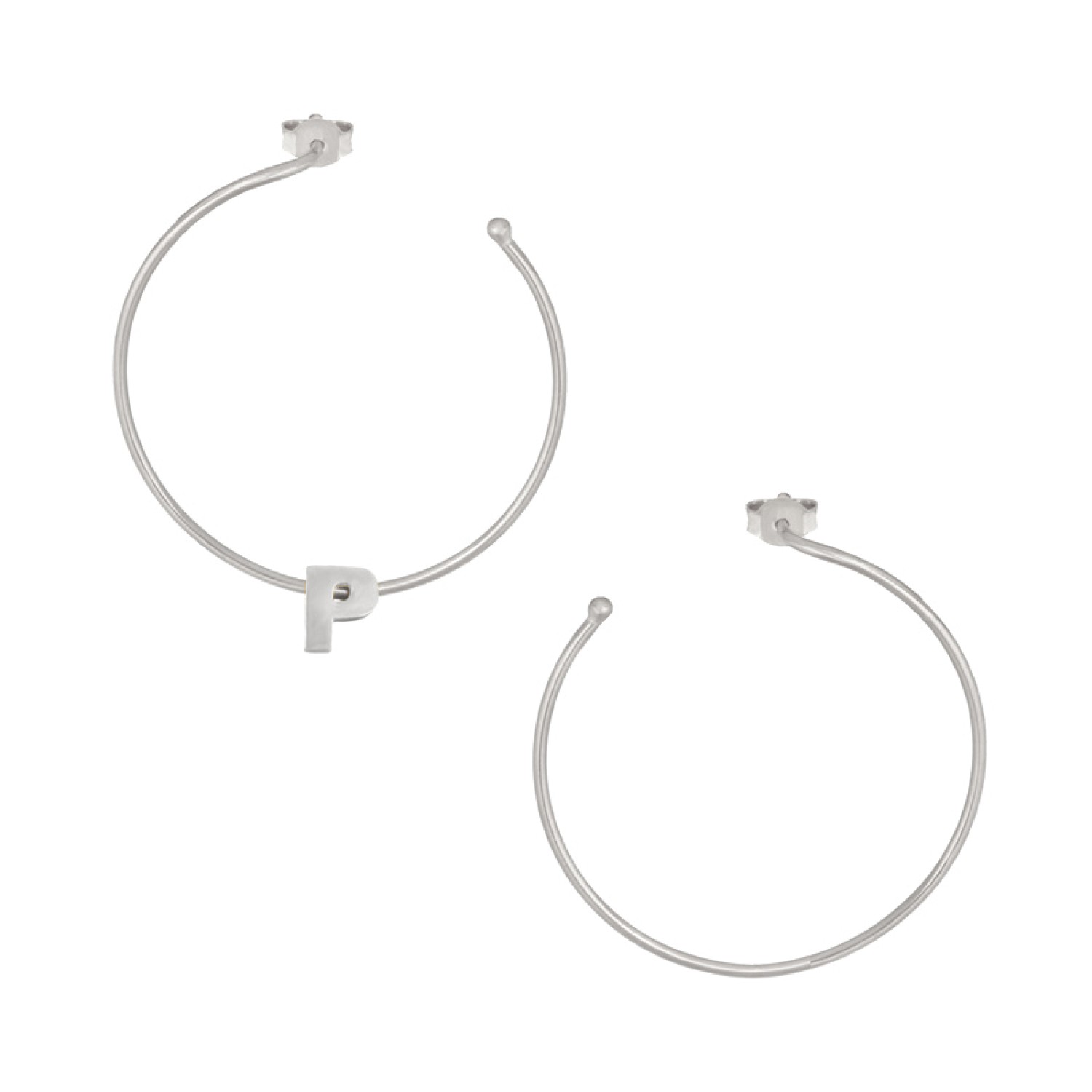 Ασημένια επιπλατινωμένα σκουλαρίκια Κρίκοι Μονόγραμμα Ρ 35.00mm