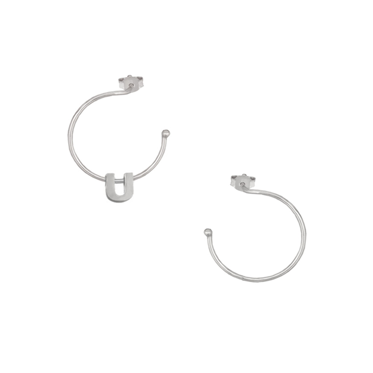 Ασημένια επιπλατινωμένα σκουλαρίκια Κρίκοι Μονόγραμμα U 16.00mm