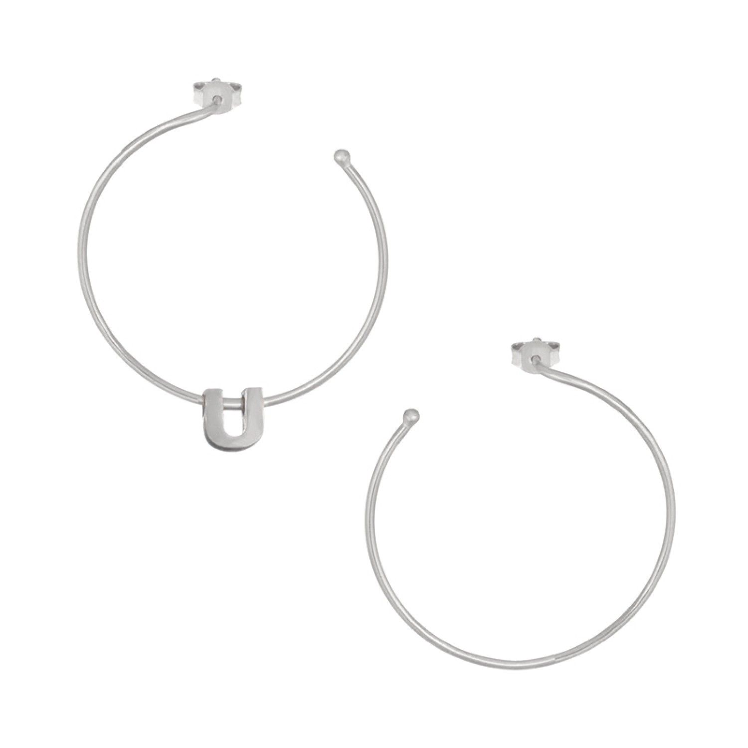 Ασημένια επιπλατινωμένα σκουλαρίκια Κρίκοι Μονόγραμμα U 35.00mm