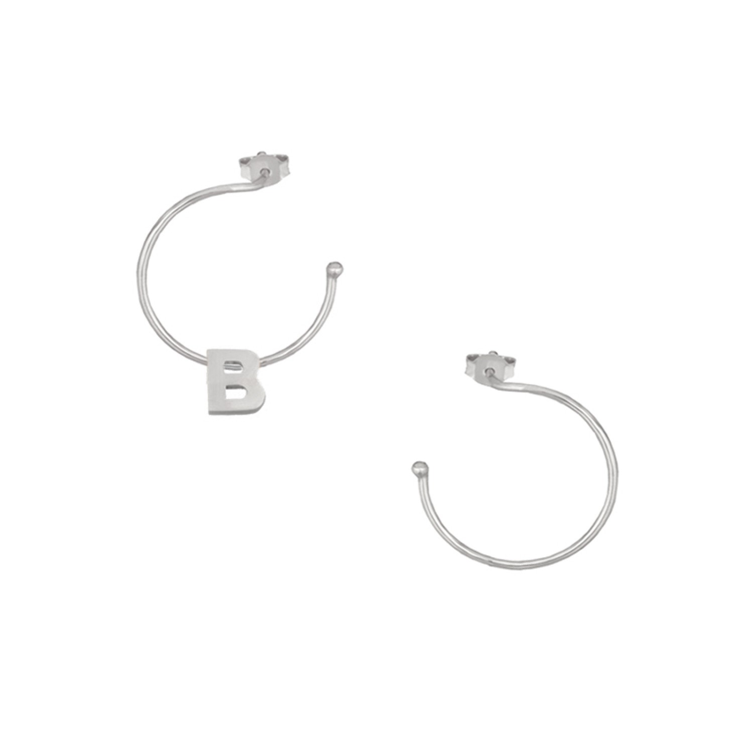 Ασημένια επιπλατινωμένα σκουλαρίκια Κρίκοι Μονόγραμμα Β 16.00mm
