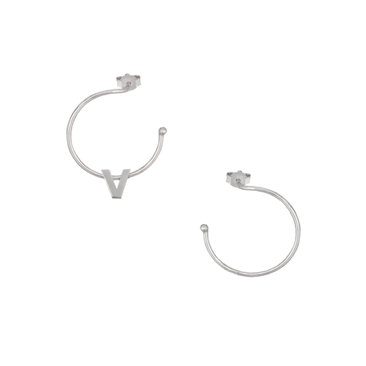 Ασημένια επιπλατινωμένα σκουλαρίκια Κρίκοι Μονόγραμμα V 16.00mm