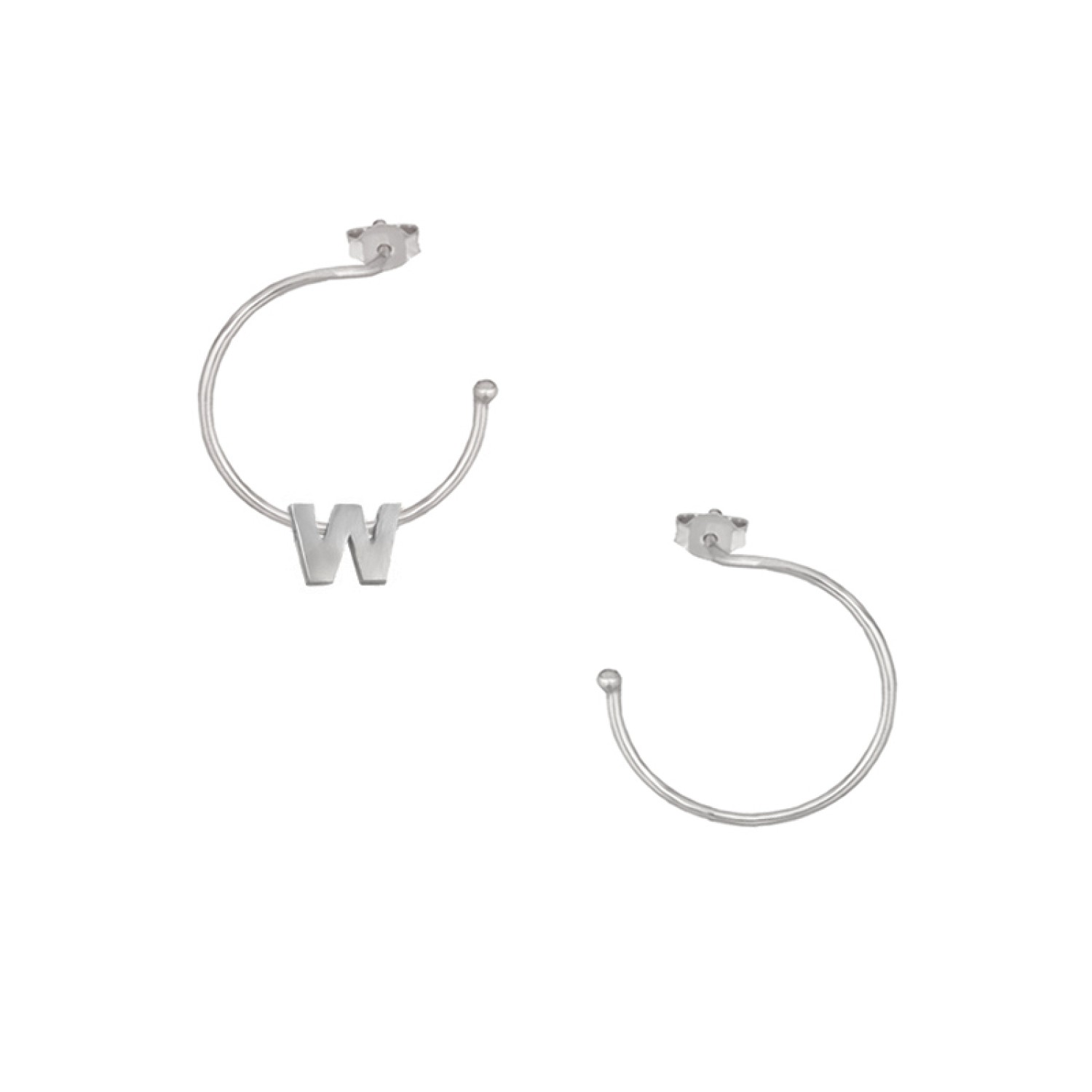Ασημένια επιπλατινωμένα σκουλαρίκια Κρίκοι Μονόγραμμα W 16.00mm