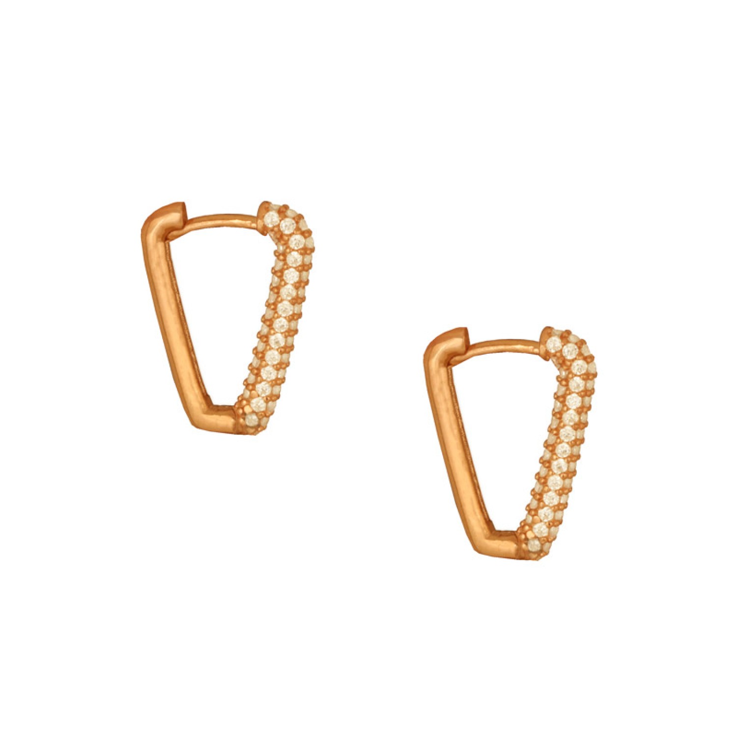 Γυναικεία ασημένια 925 επίχρυσα σε 18k χρυσό καρφωτά σκουλαρίκια huggies Κρίκοι με σχήμα V. Η μπροστινή όψη είναι στολισμένη με pave καρφωμένα ζιργκόν που αναδεικνύουν το μοντέρνο σχέδιο και προσδίδουν πολυτέλεια. Το κομψό μεσαίο τους μέγεθος τα κάνει ιδανικά για all day chic εμφανίσεις απο το πρωί ως το βράδυ. Ενω το τριγωνικό σχήμα θα ταιριάξει σε mix match συνδυασμούς. Μια εξαιρετική επιλογή που θα ανανεώσει την συλλογή σας και θα φορέσετε διαχρονικά. Προτείνουμε να τα χαρίσετε και ως ενα προσωπικό δώρο με προσιτή τιμή και πολυτέλεια.