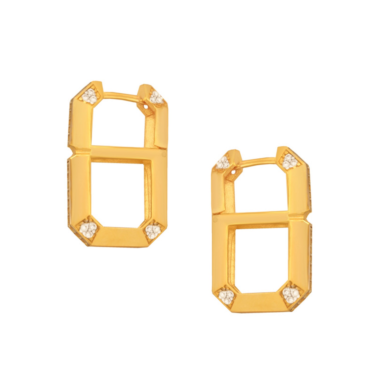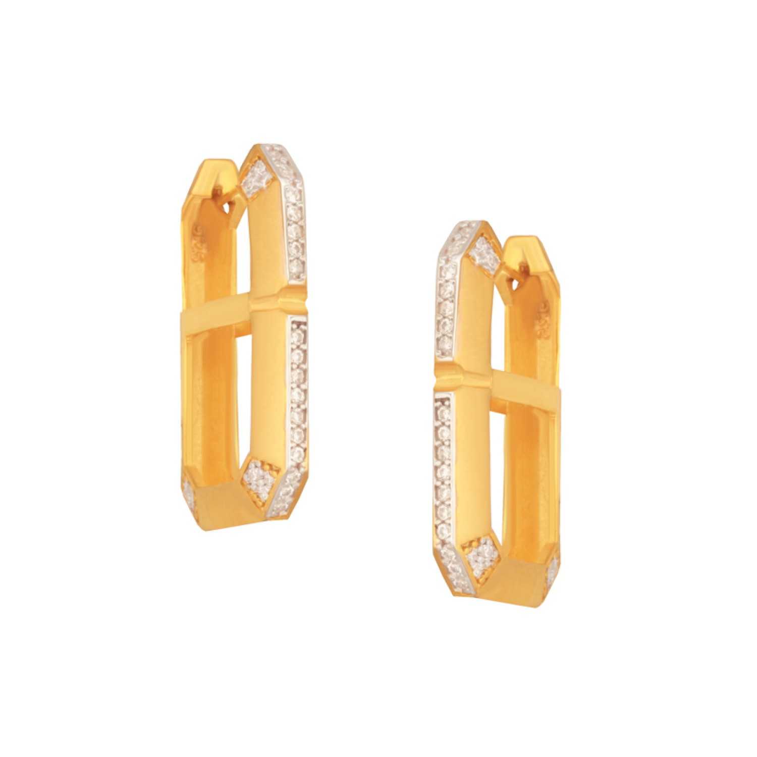 Γυναικεία ασημένια 925 επίχρυσα σε 18k χρυσό τρυπητά σκουλαρίκια huggies διπλά Τετράγωνα. Το υπέροχο σχέδιο αναδεικνύεται με λευκά ζιργκόν να προσδίδουν λεπτομέρεια. Ενω το διπλό μοτίβο δημιουργεί ενα εντυπωσιακό σχήμα με maxi μέγεθος. Απόλυτα λαμπερά, θα χαρίσουν πόντους glam στύλ σε κάθε chic εμφάνιση. Ενα ξεχωριστό ζευγάρι που θα μαγνητίσει όλα τα βλέμματα θαυμασμού. Ιδανική επιλογή για να τα συνδυάσετε και με αλλα για ενα fashion ear party look.