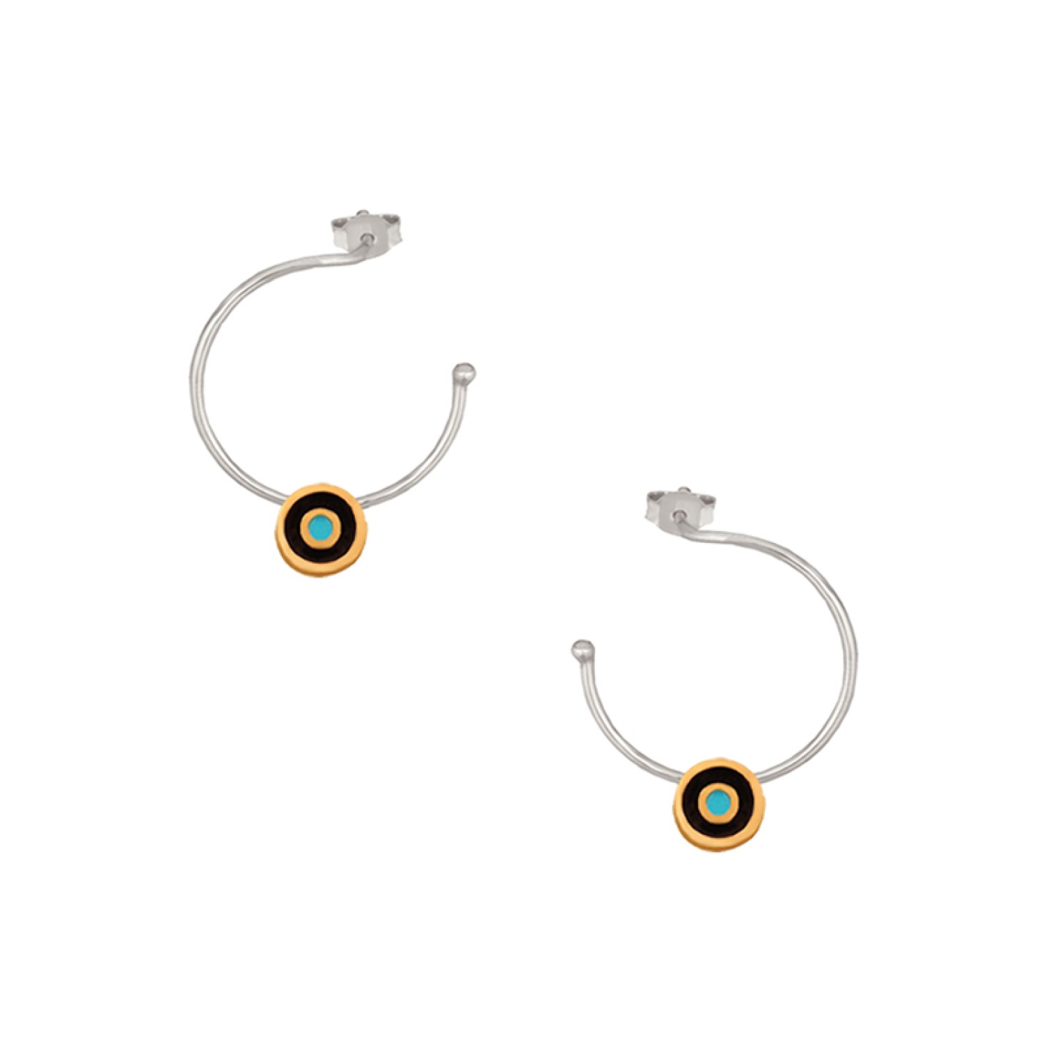 Γυναικεία ασημένια σκουλαρίκια 925 με περαστό μάτι σε μπροστινό επιχρυσωμένο Κρίκο. Ένα χειροποίητο κόσμημα που συνδυάζει απαράμιλλη λάμψη και chic στυλ, ενώ υπόσχεται να πρωταγωνιστήσει σε κάθε εμφάνιση. Θα γίνει το σήμα κατατεθέν σας μαγνητίζοντας όλα τα βλέμματα θαυμασμού. Το πιο προσωπικό σας κόσμημα είναι εδώ τώρα και πάντα. Το κομψό μέγεθος είναι ιδανικό να το συνδυάσετε και με αλλά για ένα ear party look.