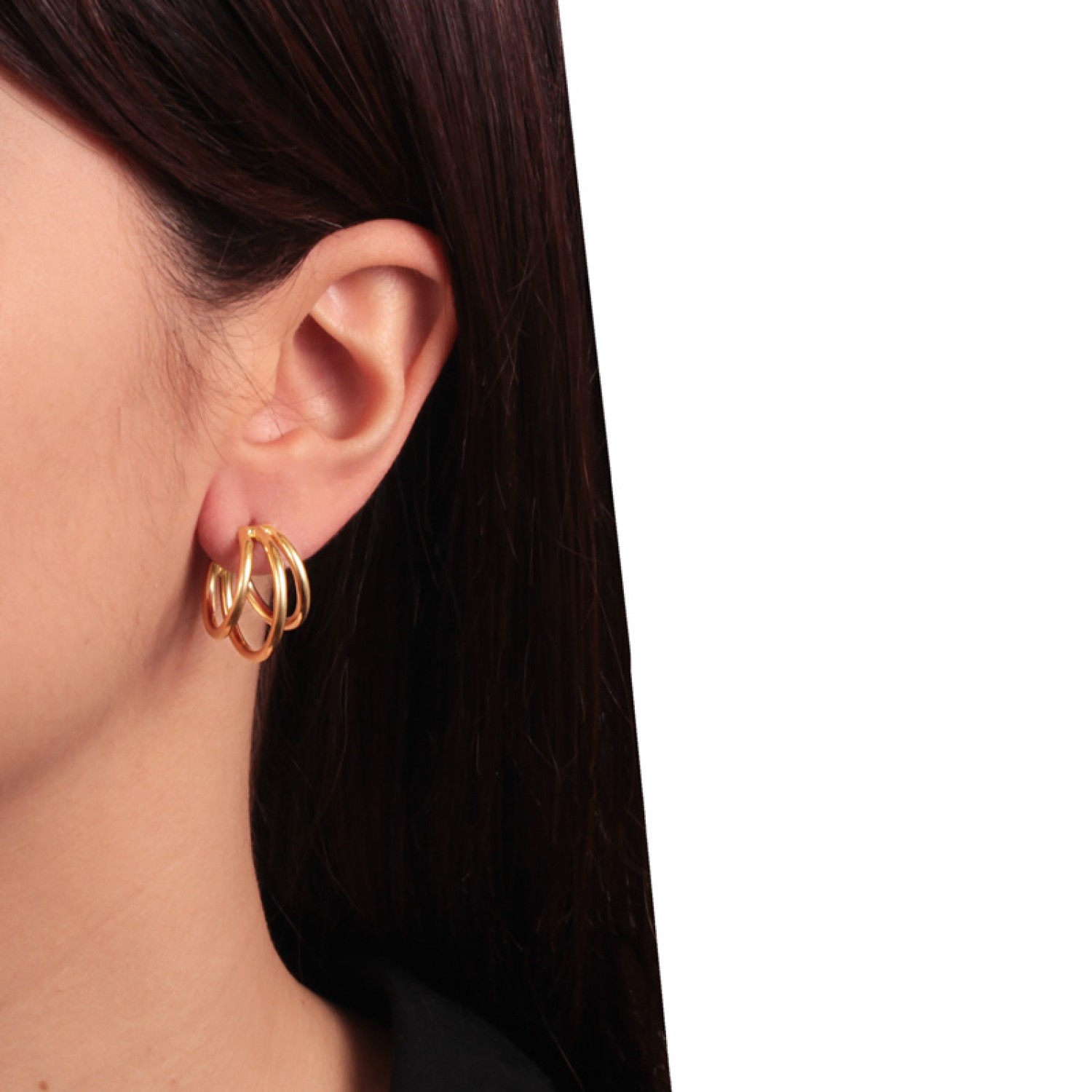 Ασημένια επίχρυσα σκουλαρίκια τριπλοί Κρίκοι 20.00mm