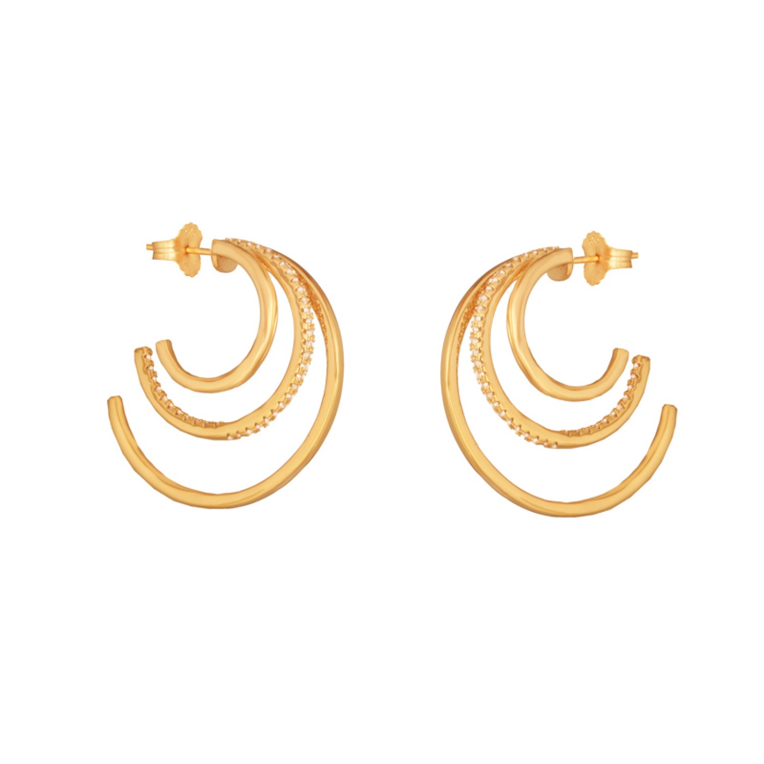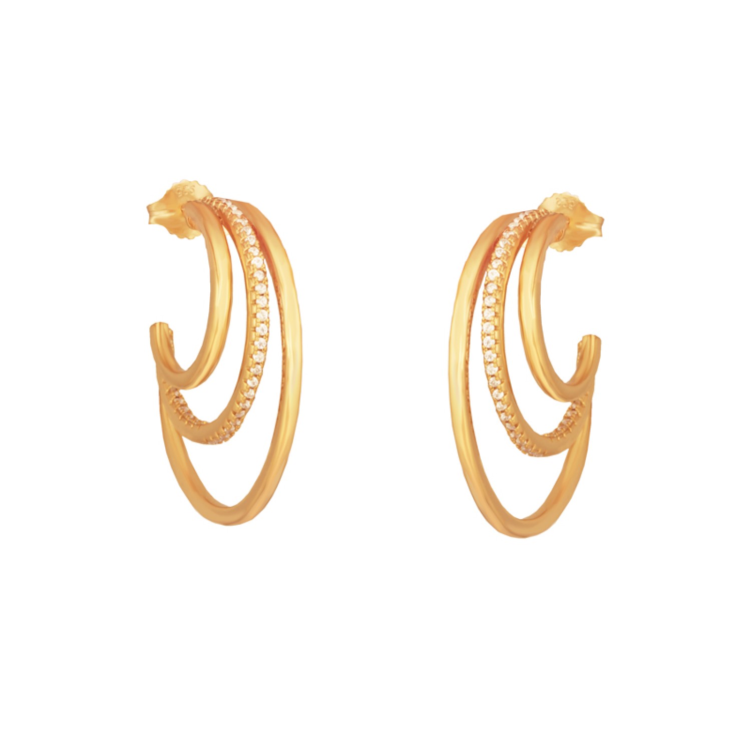 Ασημένια επίχρυσα σκουλαρίκια Τριπλοί Κρίκοι 30.00mm