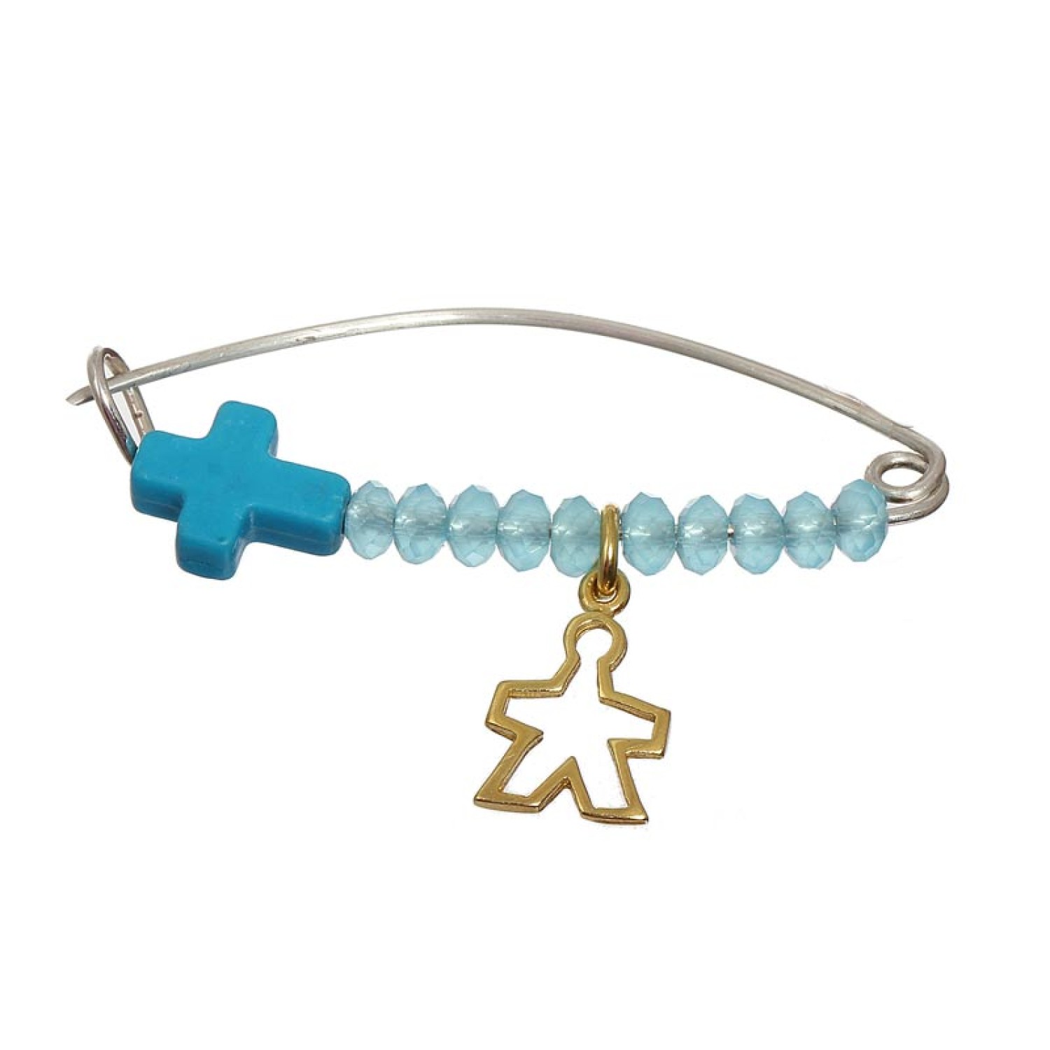 Ασημένια καρφίτσα με σταυρό , πέτρες και επίχρυσο μοτίφ αγόρι