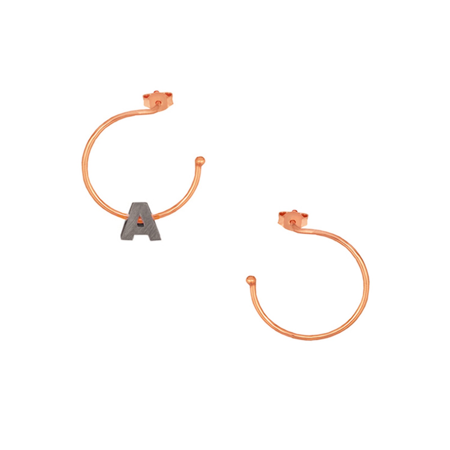 Ασημένια μαύρα σκουλαρίκια Κρίκοι Μονόγραμμα Α 16.00mm