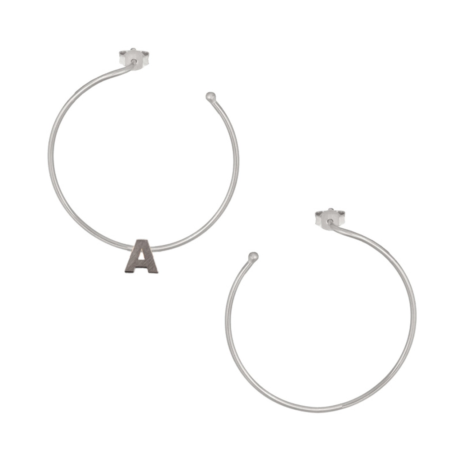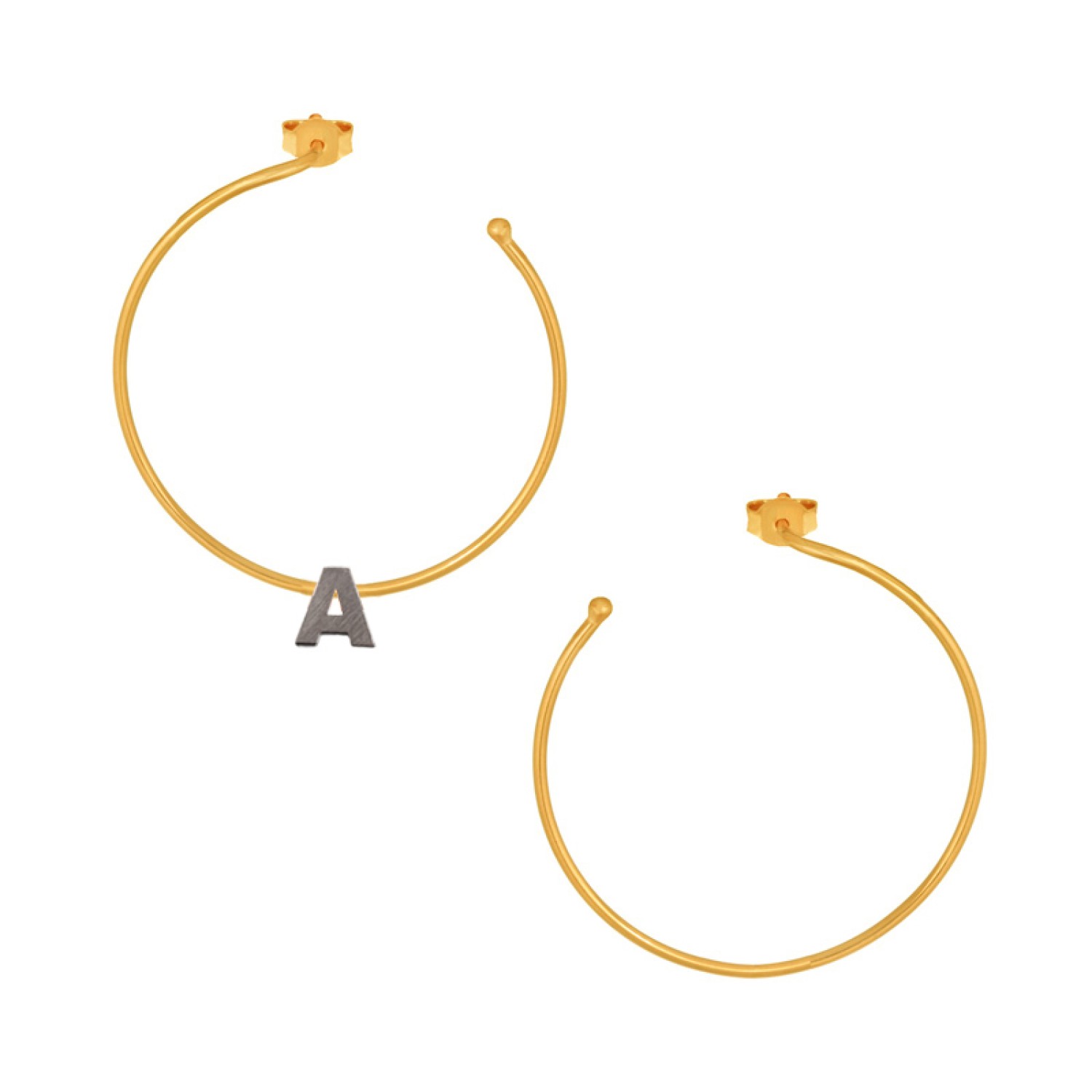 Ασημένια μαύρα σκουλαρίκια Κρίκοι Μονόγραμμα Α 35.00mm