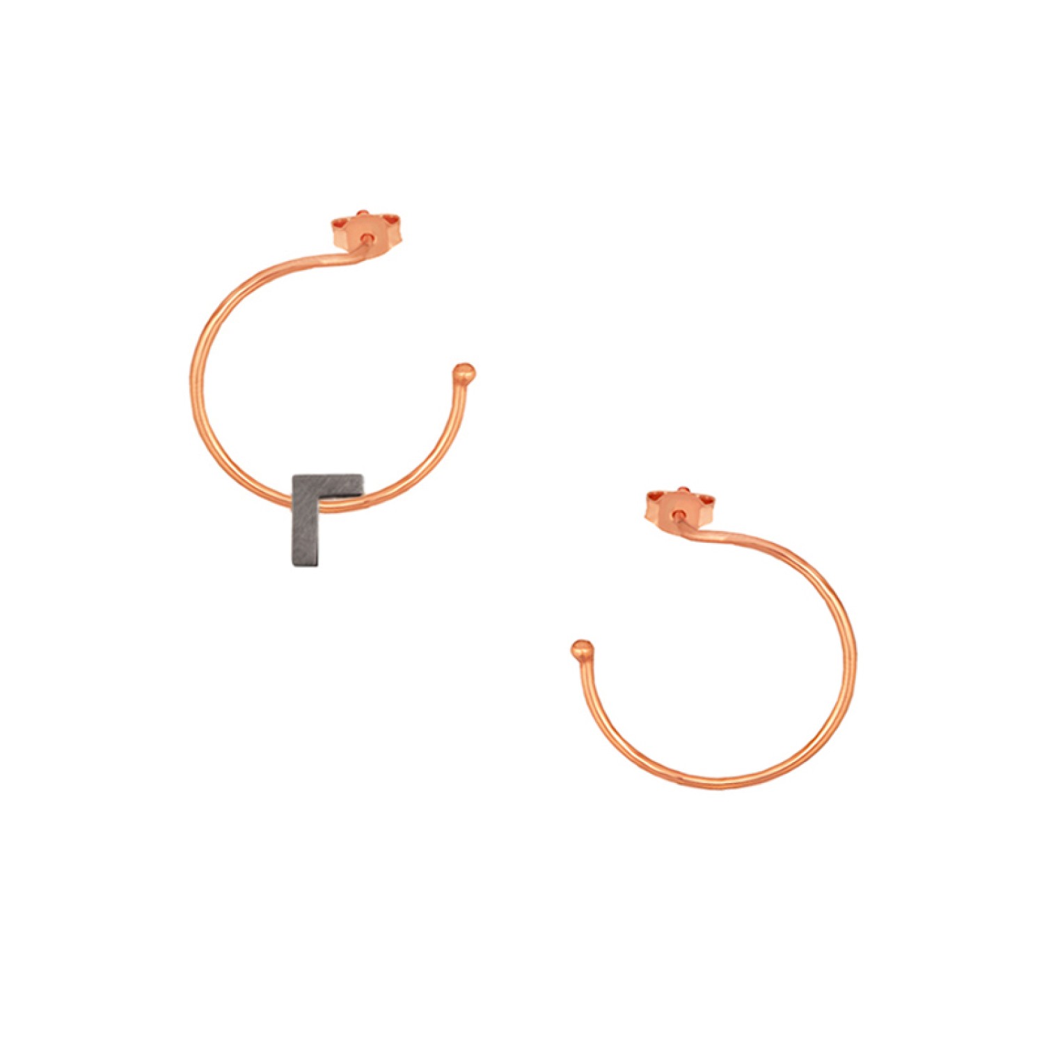 Ασημένια μαύρα σκουλαρίκια Κρίκοι Μονόγραμμα Γ 16.00mm