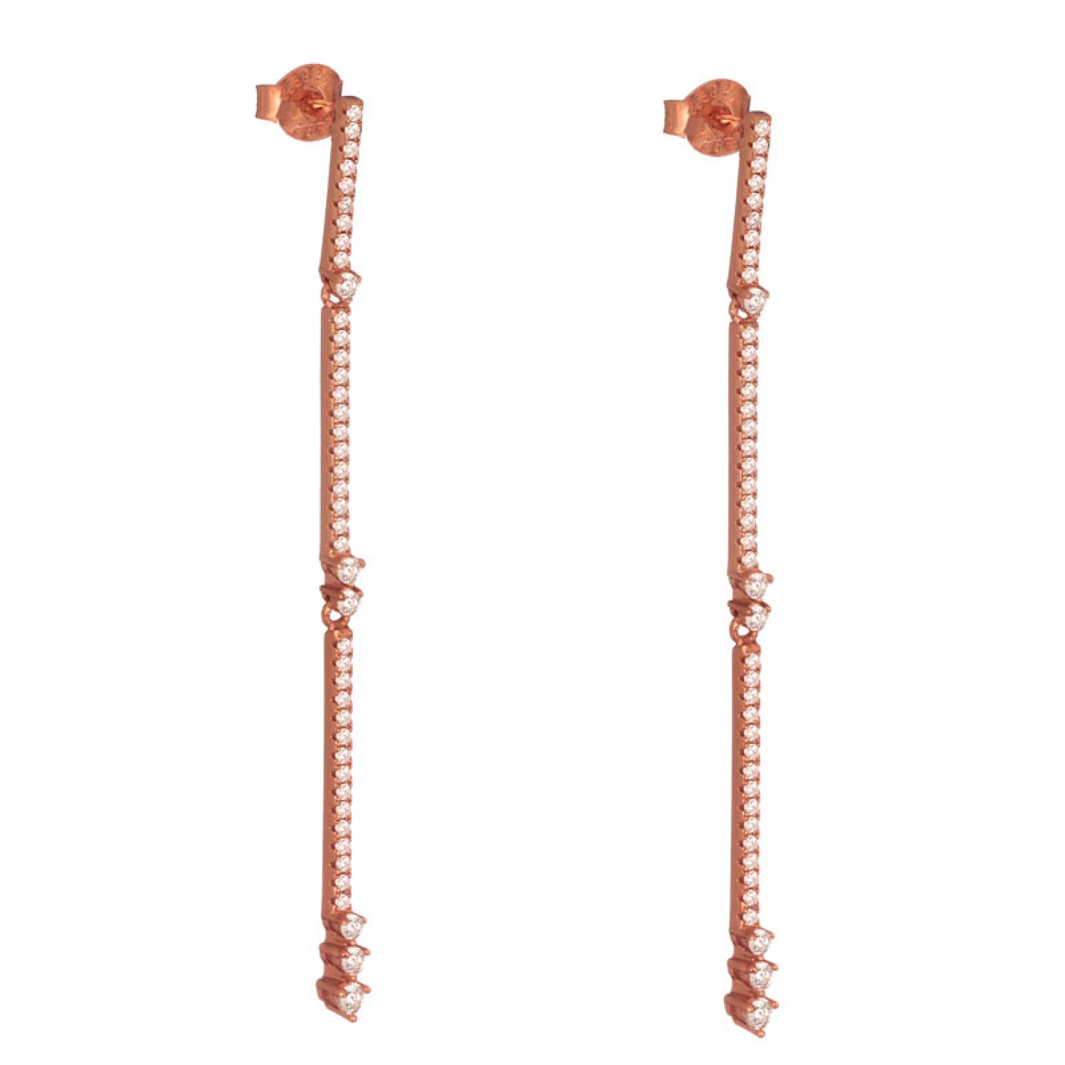 Γυναικεία ασημένια 925 ρόζ επιχρυσωμένα σε 18k καρφωτά κρεμαστά σκουλαρίκια Μονόπετρα Ριβιέρες. Τα σειρέ ζιργκόν θα σας στολίσουν στην στιγμή αντανακλώντας απαράμιλλη λάμψη με κάθε σας κίνηση. Ενα ακαταμάχητο ζευγάρι που θα αναβαθμίσει κάθε chic σύνολο. Μια εξαιρετική επιλογή για εσάς ή για ενα προσωπικό δώρο με πολυτέλεια και στύλ.