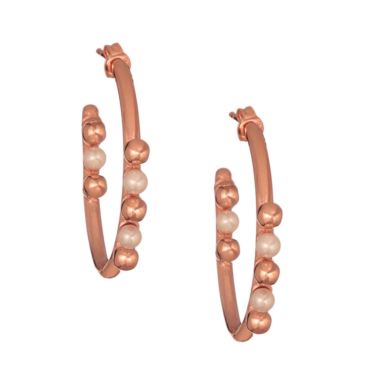 Ασημένια ρόζ σκουλαρίκια Κρίκοι Μαργαριτάρια