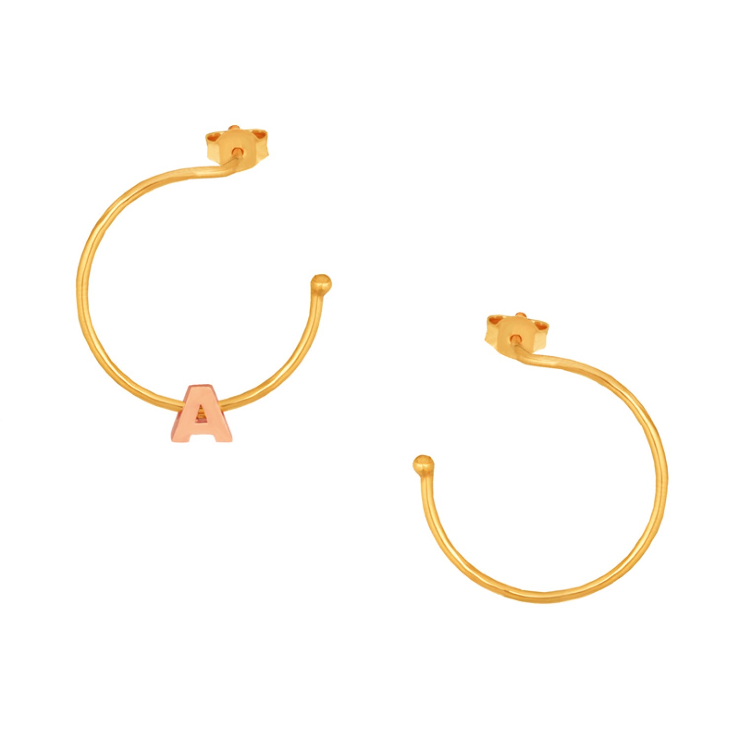 Ασημένια ρόζ σκουλαρίκια Κρίκοι Μονόγραμμα Α 25.00mm