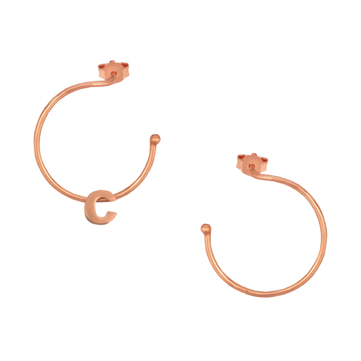 Γυναικεία ασημένια 925 ρόζ επιχρυσωμένα σκουλαρίκια μπροστινοί Κρίκοι 25.00mm με περαστό Αρχικό Γράμμα C. Ένα χειροποίητο κόσμημα που συνδυάζει απαράμιλλη λάμψη και chic στύλ, ενώ υπόσχεται να πρωταγωνιστήσει σε κάθε εμφάνιση. Θα γίνει το σήμα κατατεθέν σας μαγνητίζοντας όλα τα βλέμματα θαυμασμού. Το πιο προσωπικό σας κόσμημα είναι εδώ τώρα και πάντα. Το κομψό μέγεθος είναι ιδανικό να το συνδυάσετε και με αλλά για ένα ear party look.