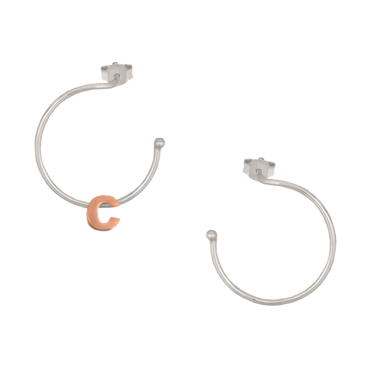 Ασημένια ρόζ σκουλαρίκια Κρίκοι Μονόγραμμα C 25.00mm