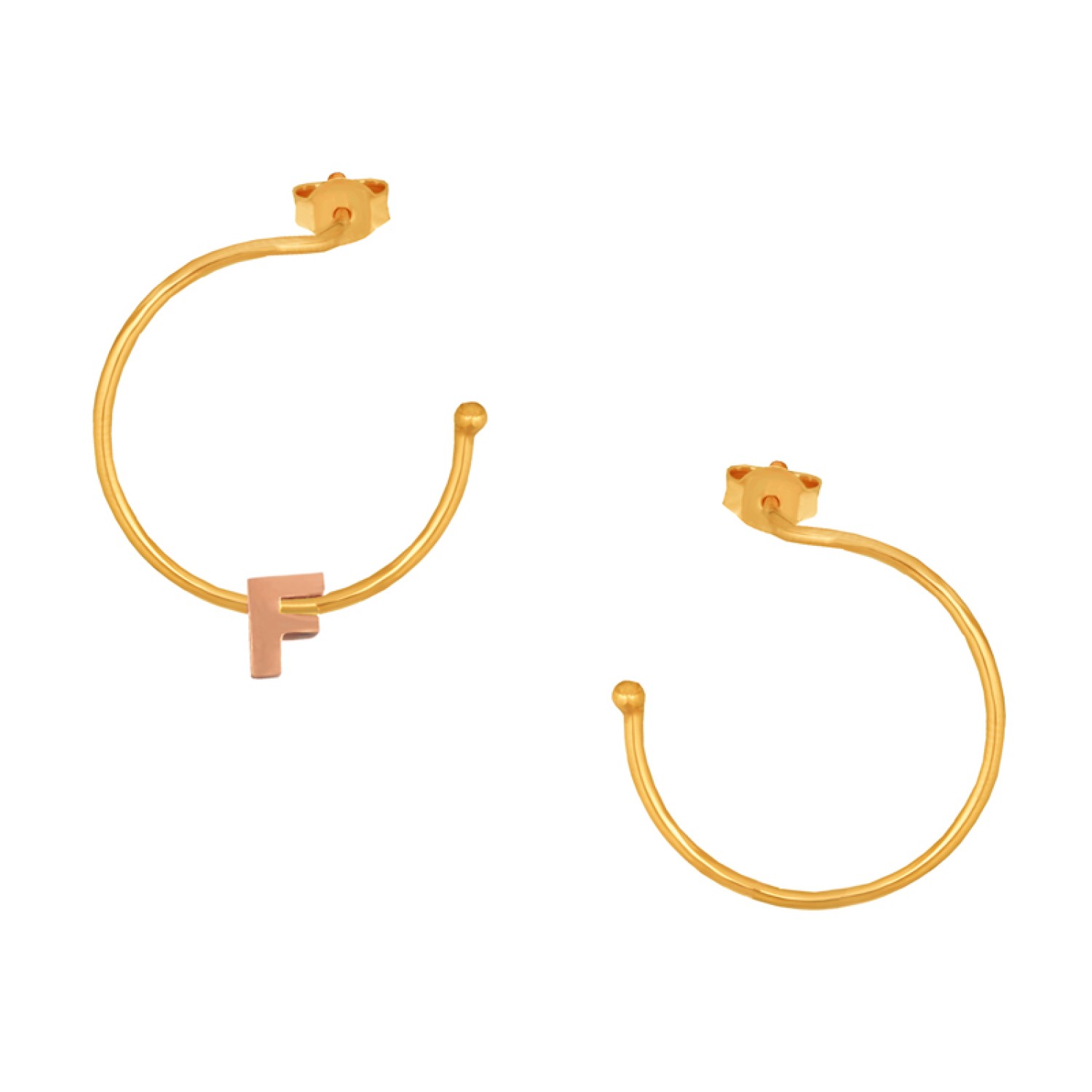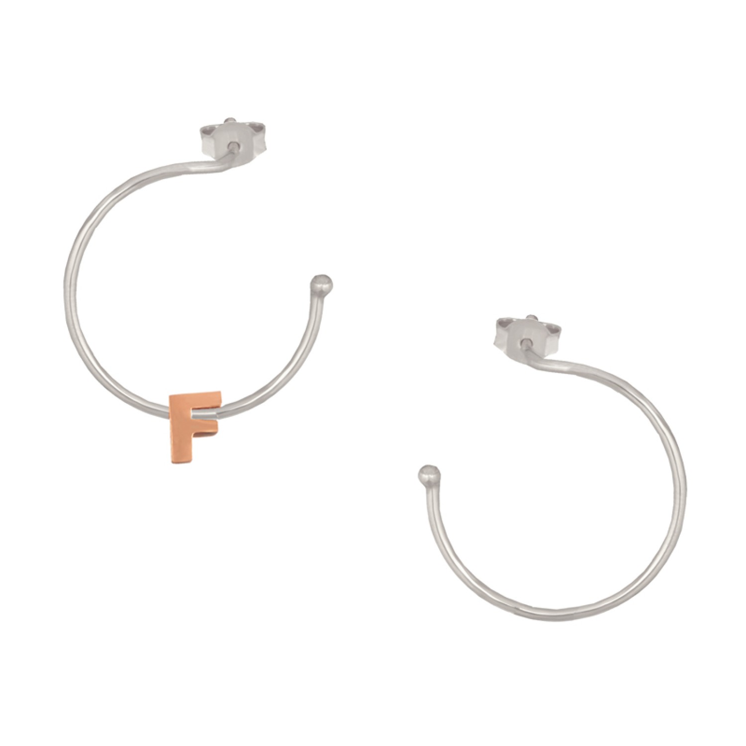 Ασημένια ρόζ σκουλαρίκια Κρίκοι Μονόγραμμα F 25.00mm