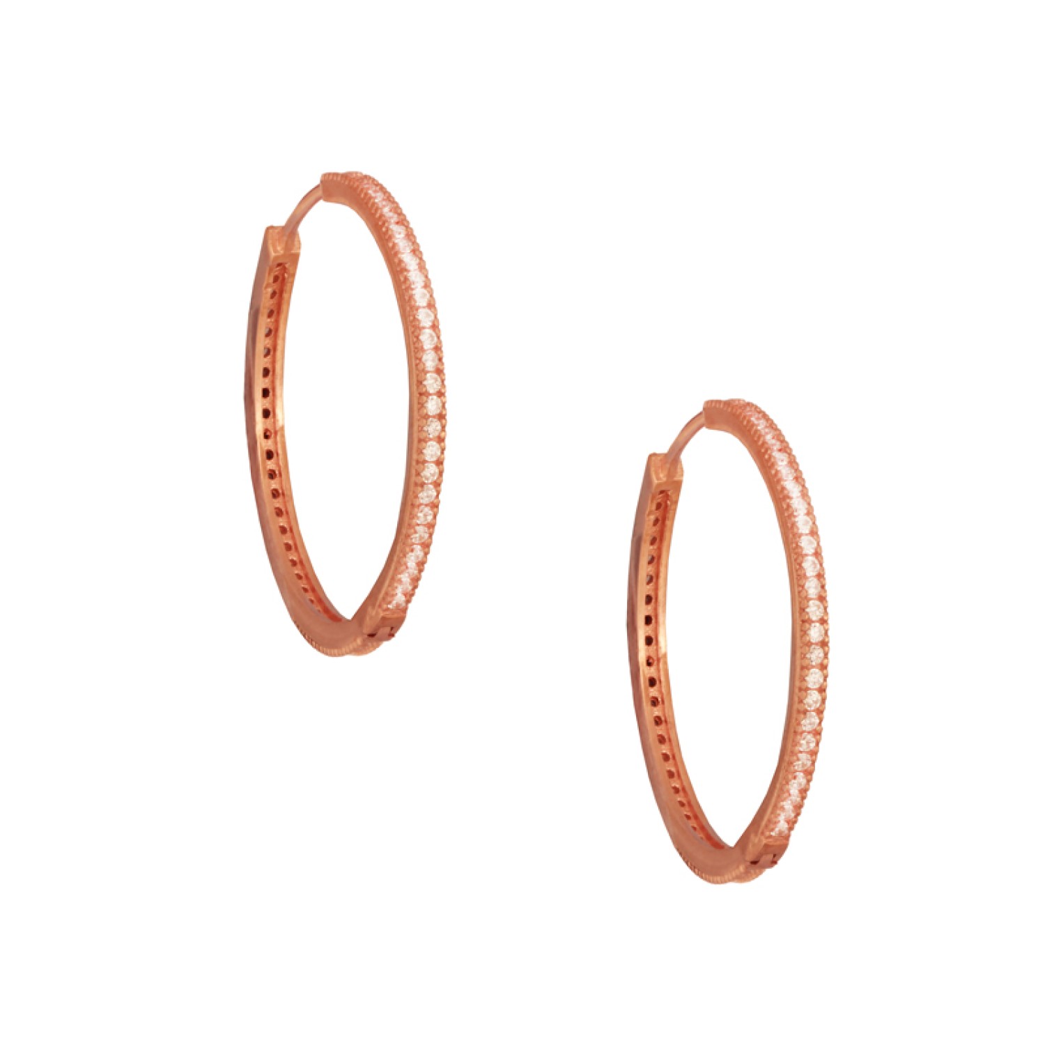 Γυναικεία ασημένια 925 επιχρυσωμένα σε 18k ρόζ χρυσό τρυπητά σκουλαρίκια tennis huggies Κρίκοι 26.00 χιλιοστά με pave καρφωμένα λευκά ζιργκόν. Ενα κλασσικό σχέδιο που συνδυάζει κομψότητα και διαχρονικότητα. Το maxi μέγεθος και οι εκτυφλωτικές πέτρες τους θα μεταμορφώσουν κάθε chic εμφάνιση, αντανακλώντας απαράμιλλη λάμψη απο κάθε γωνία. Ενα υπέροχο ζευγάρι που αξίζει μια θέση στην κοσμηματοθήκη σας. Μια εξαιρετική πρόταση για εσάς ή για ενα προσωπικό δώρο με πολυτέλεια.